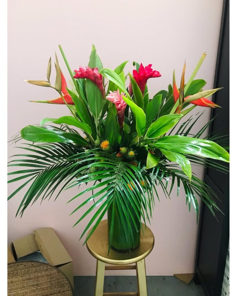 Tropical arrangements are vibrant and dramatic. Use birds of paradise, orchids, monstera leaves, and anthuriums. This style is perfect for summer parties and bright interiors. Large leaves create a lush backdrop while bright blooms pop. Choose a tall vase to support heavy stems. The arrangement should feel bold and asymmetrical. Tropical flowers last long and make a strong visual statement.