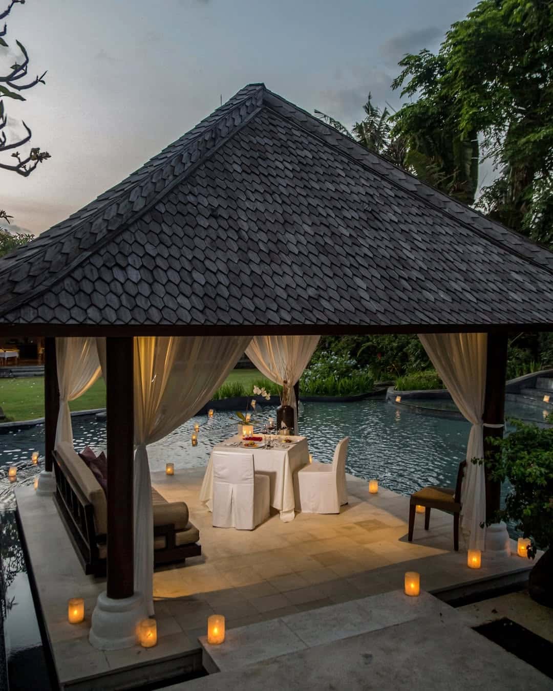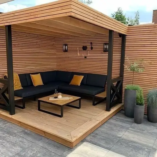 Perfect for couples, a romantic gazebo features flowing fabric drapes, warm fairy lights, and soft furnishings. White or pastel colors work beautifully, especially with roses or jasmine climbing the structure. Inside, place a loveseat or a small table for two with plush cushions. Candles or lanterns enhance the intimate vibe during the evening. This setup is perfect for anniversaries, proposals, or simply enjoying a glass of wine together. With a few carefully chosen décor touches, this gazebo can feel like a private hideaway, offering both beauty and emotional warmth.