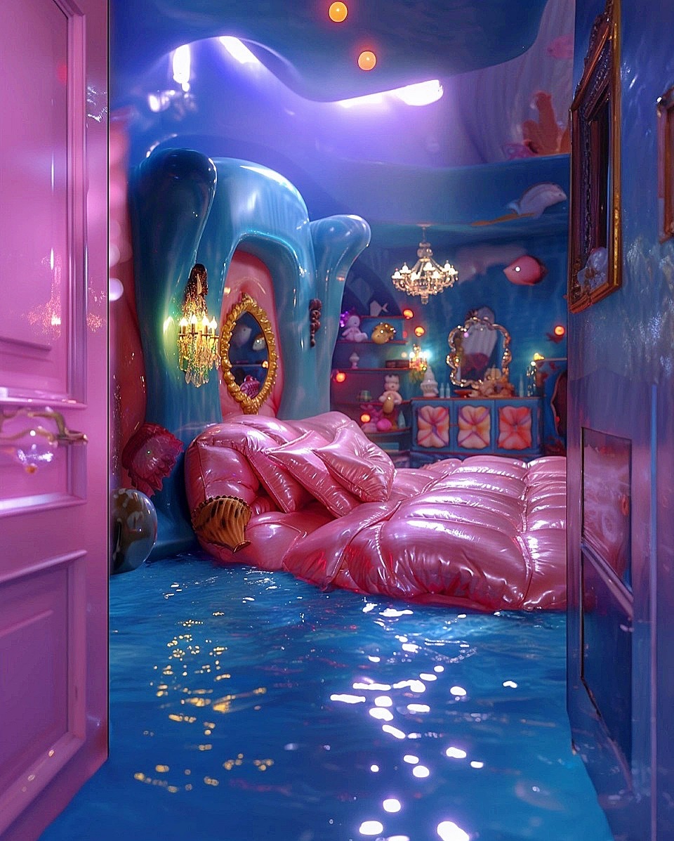 Bring ocean magic to life with turquoise walls, seashell accents, and shimmering fabrics that mimic underwater light. Mermaid-themed bedding and iridescent décor create a fantasy seascape. Add netted canopies, shell pillows, and pearl-like fairy lights. Wall decals of sea creatures, coral reefs, and tail silhouettes complete the theme. A cozy reading nook with a scalloped chair or floor cushions adds charm. This room is perfect for girls who adore ocean themes, coastal colors, and whimsical designs inspired by mermaids, beaches, and underwater worlds.