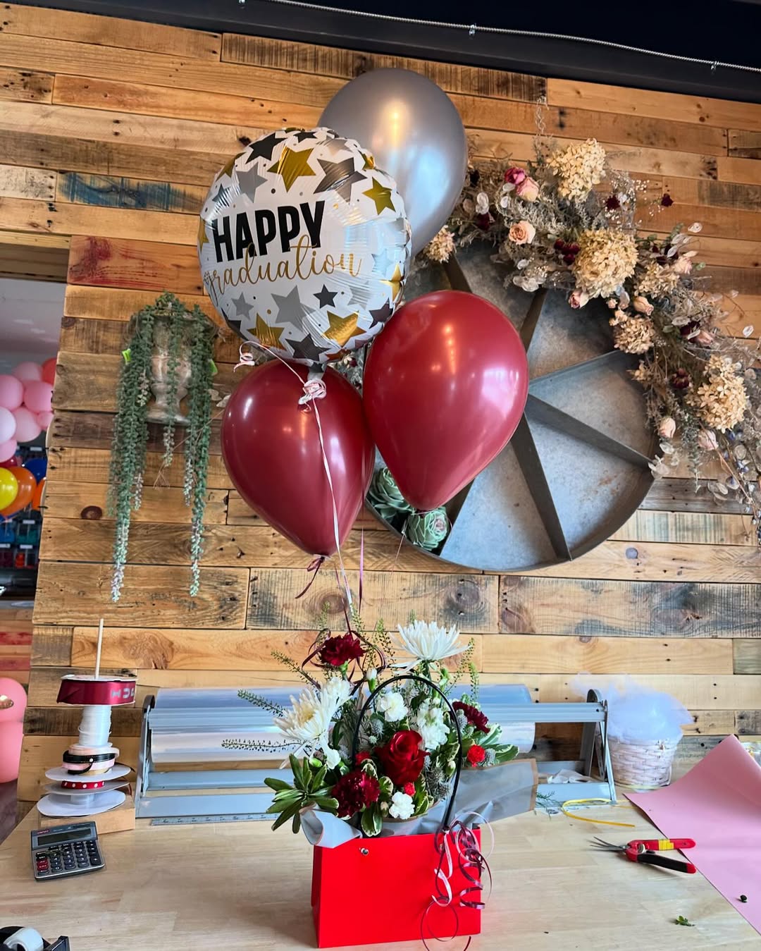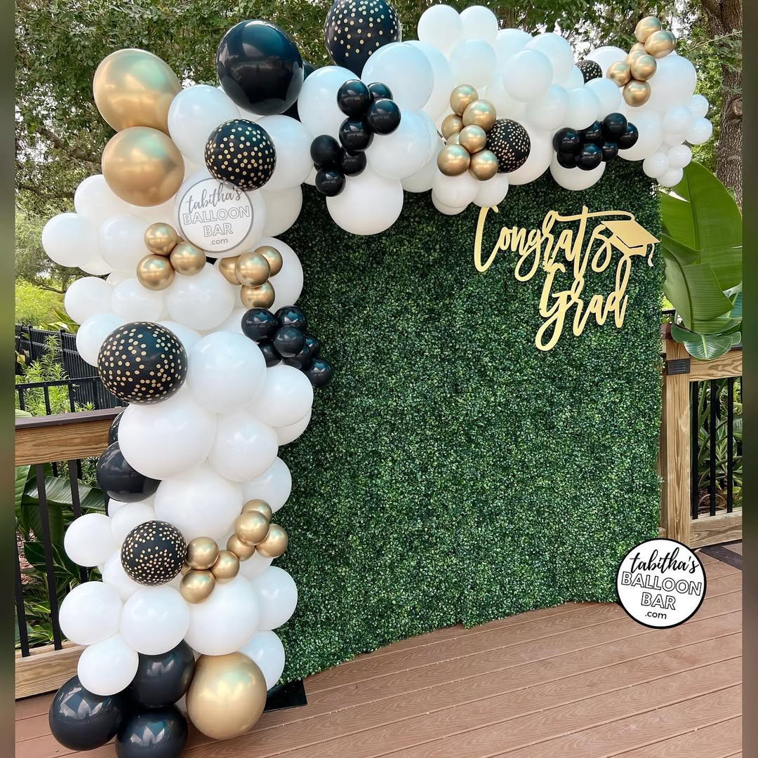 Arrange clusters of helium balloons as table centerpieces, using metallic, matte, and confetti balloons. Mix large and small balloons for depth. Tie them to small weights or decorative jars filled with candy or flowers. Customize with the graduate’s name, graduation year, or small themed cutouts. Adding LED string lights to the balloon strings enhances the visual appeal. These centerpieces create a festive and cheerful atmosphere while taking up minimal space on tables. They’re playful, easy to move, and double as photo props, making them a versatile decoration idea for any graduation party.