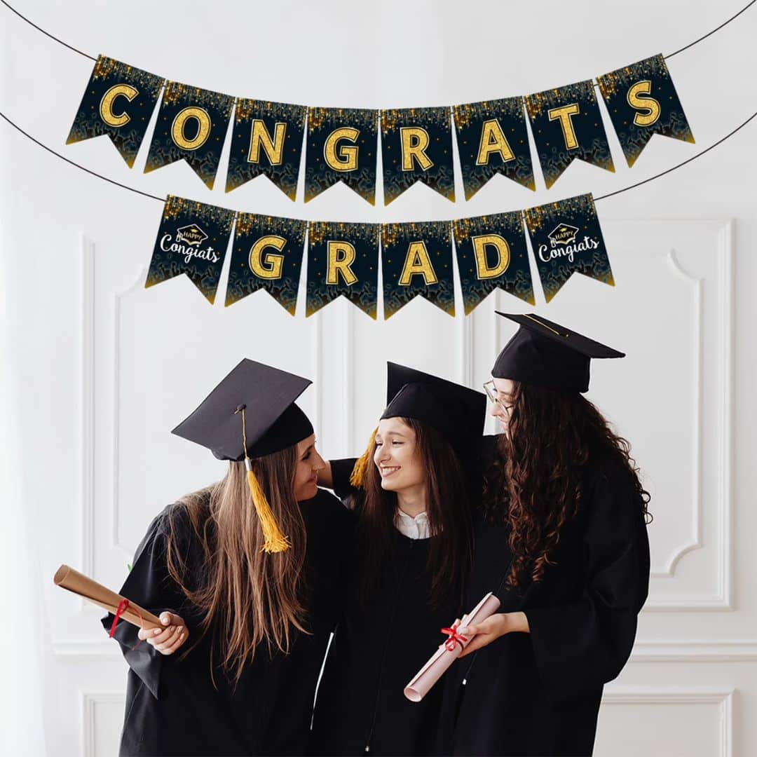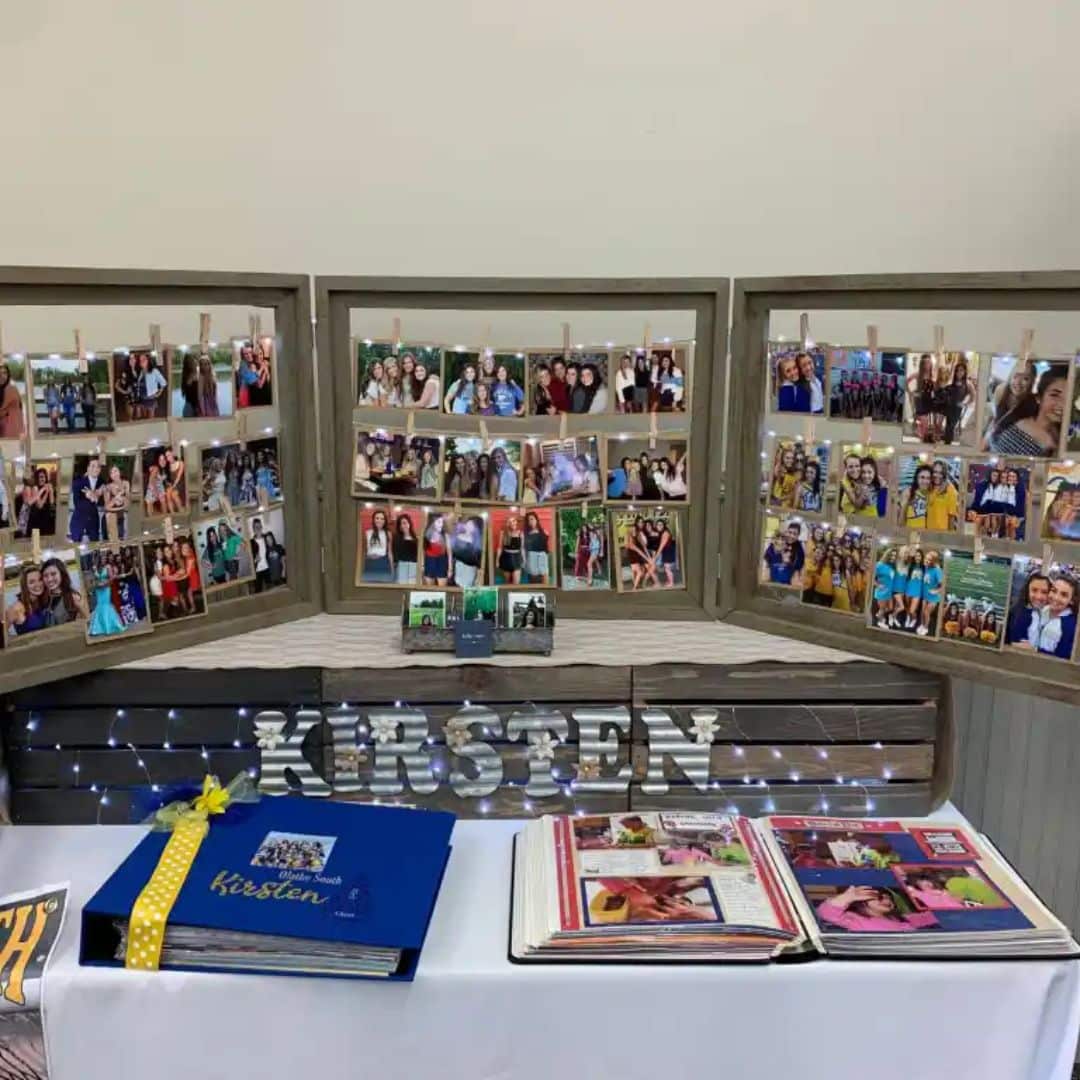 Create a hanging photo garland with the graduate’s school journey from childhood to graduation. Clip photos on string using mini clothespins. Add small decorative elements like tassels, stars, or tiny caps. Hang along walls or above tables for guests to enjoy. Incorporate fairy lights for added glow and charm. This decoration is both sentimental and visually appealing, offering a personal glimpse into the graduate’s life. Guests can reminisce while exploring the garland, making it a meaningful part of the party decor. It also doubles as a creative storytelling element.