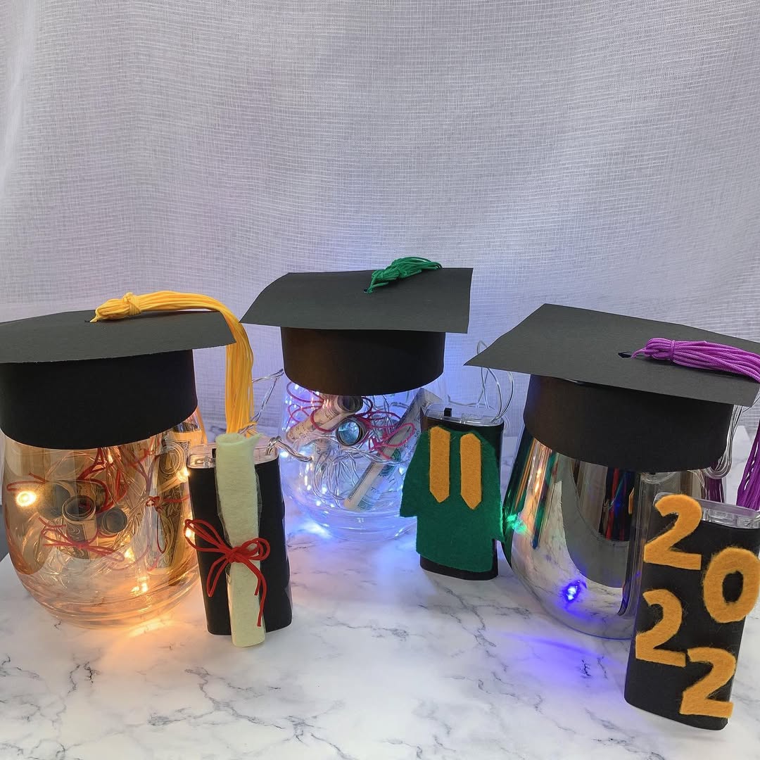 For tables, create centerpieces shaped like graduation caps. Use black cardstock for the square top and a small cylindrical base, adorned with tassels. Add mini bouquets, candles, or fairy lights around the caps for a festive touch. Incorporate the graduate’s favorite colors for a more personalized look. You can also attach small inspirational quotes or fun facts about the graduate. These centerpieces are both thematic and practical, drawing attention while leaving room for food or drinks. Guests will enjoy the creativity, and the pieces can be taken home as keepsakes.