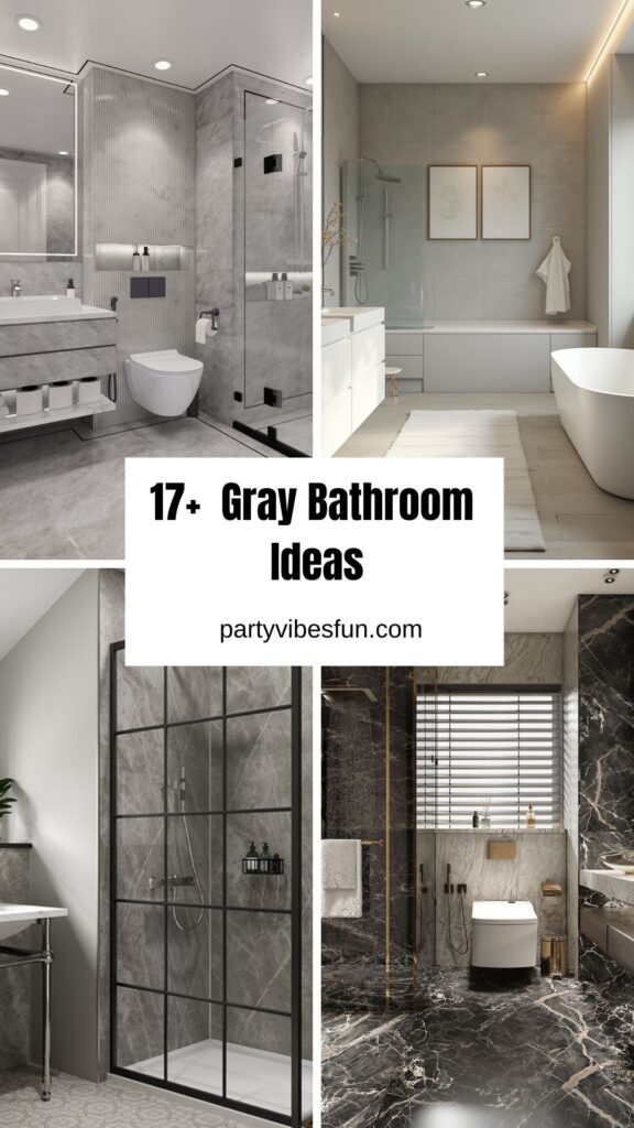 A small gray bathroom can feel surprisingly spacious when designed thoughtfully. Light gray walls reflect light and make the room appear larger. Large-format gray tiles reduce visual breaks, creating a seamless look. Floating vanities and wall-mounted toilets save space while maintaining style. Mirrors play a crucial role by amplifying light and depth. Subtle contrasts, such as darker gray floors or accents, add dimension without overcrowding the room. This approach proves that gray is an excellent choice even for compact bathroom spaces.