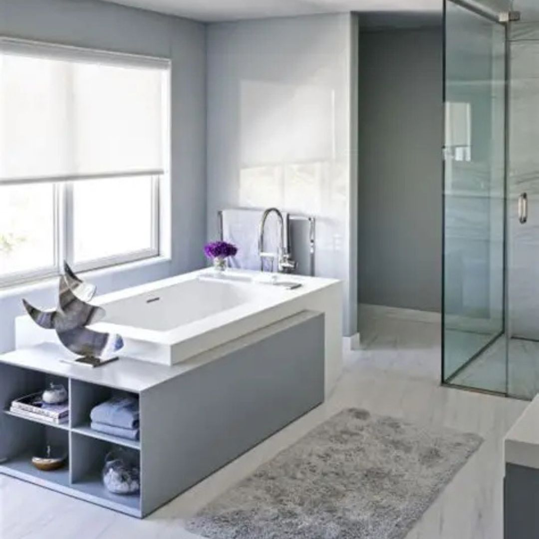 A gray and white bathroom offers a timeless and versatile design. Soft gray walls paired with crisp white tiles or cabinetry create a clean and balanced look. This combination allows flexibility in styling, whether leaning traditional or contemporary. Chrome fixtures and classic subway tiles enhance the elegance. Patterned gray-and-white floors can add subtle interest without overwhelming the space. This style works in any bathroom size and appeals to homeowners seeking a neutral palette that remains stylish for years while offering easy updates through accessories.