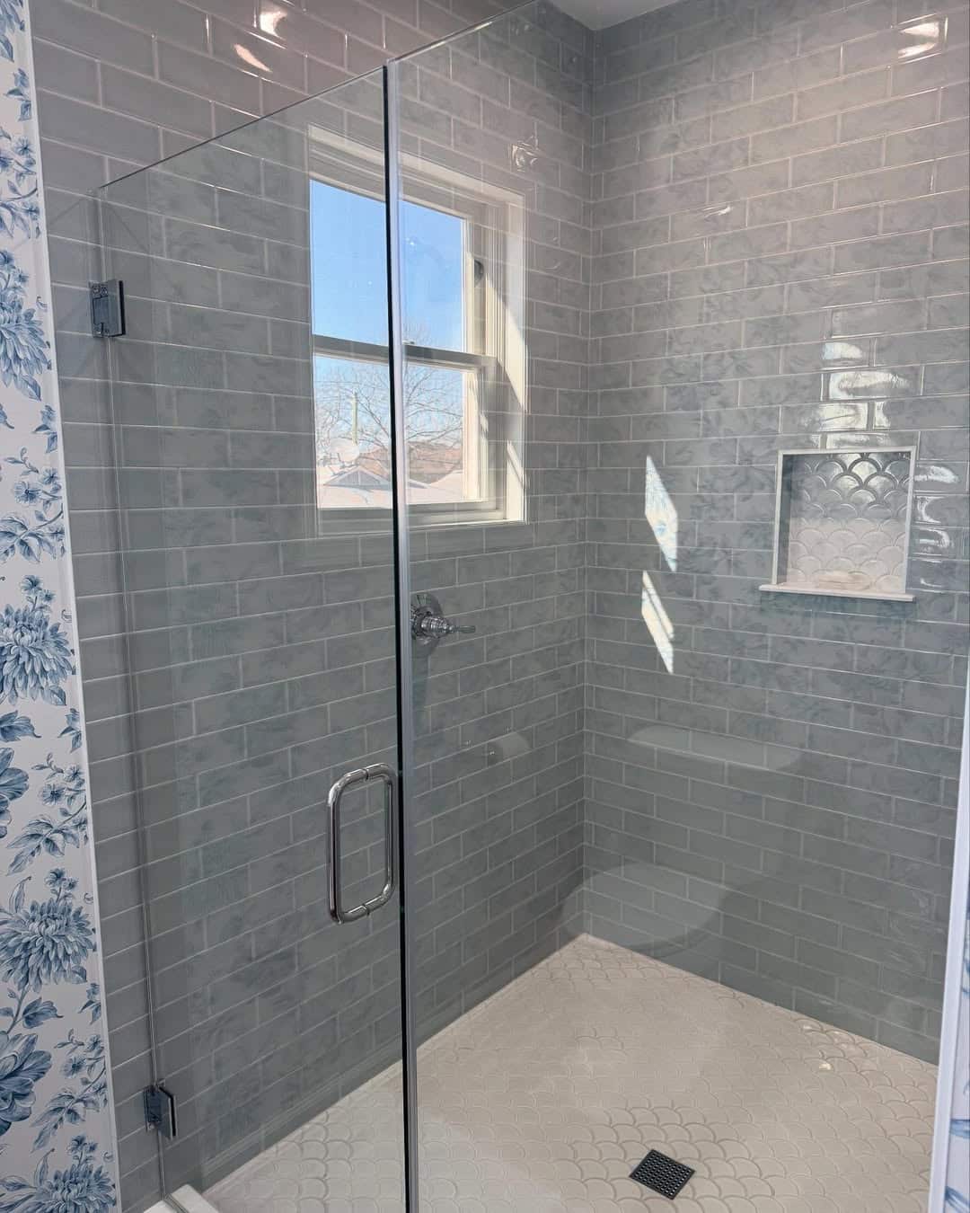 Grey subway tiles are timeless yet modern, especially in a shower. Their rectangular shape creates a clean, linear look that works well in both matte and glossy finishes. Lighter greys open up smaller bathrooms, while darker greys feel bold and moody. You can arrange them in traditional horizontal patterns, herringbone, or stacked vertically for a contemporary touch. Pairing them with black fixtures adds contrast, while chrome or brass finishes bring warmth. Grey subway tiles are versatile enough to complement marble floors, patterned accents, or even natural wood vanities, making them a practical yet stylish choice for a shower space.