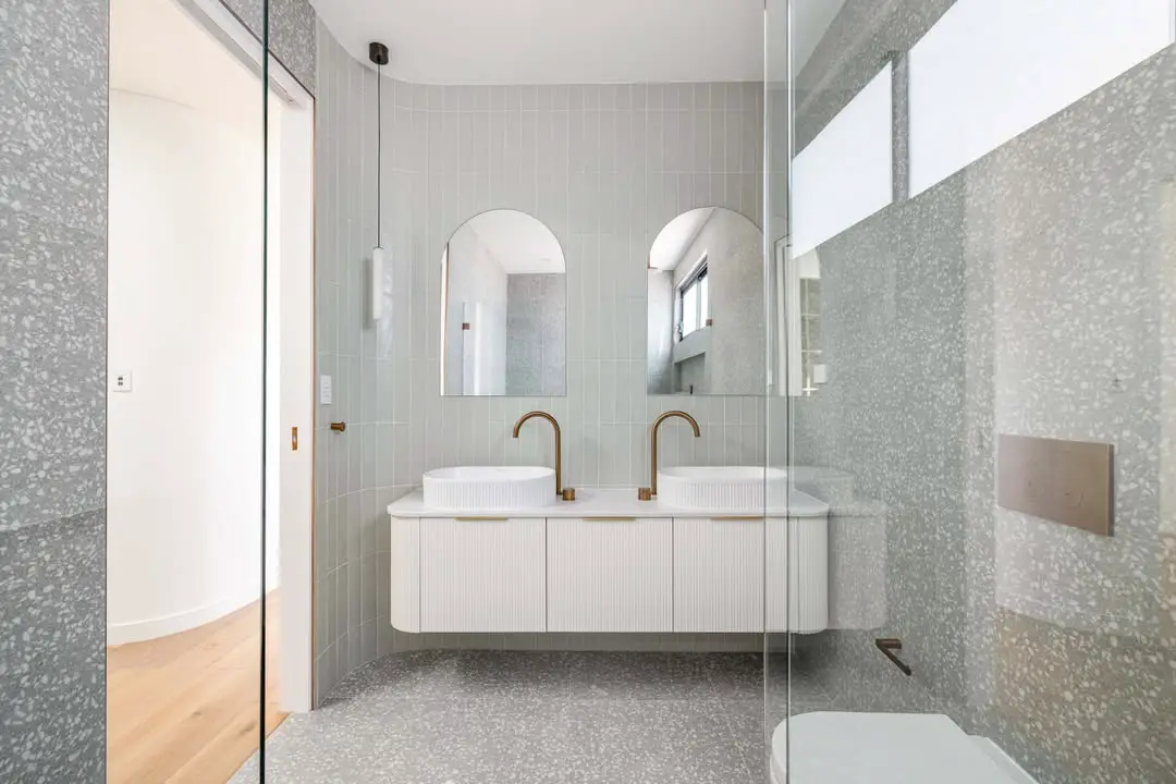 Grey terrazzo tiles bring artistic flair to shower spaces with their speckled patterns of marble, quartz, or stone chips. Their unique designs add personality while maintaining a sophisticated, modern look. Terrazzo works well as an accent wall or flooring, providing slip resistance and durability. Lighter greys with white and beige flecks feel bright and cheerful, while darker greys with bold stone chips add drama. Terrazzo pairs beautifully with minimalist fixtures and matte black or brushed brass finishes. Its playful yet refined design makes it ideal for contemporary bathrooms, transforming showers into stylish, statement-making spaces that balance elegance and fun.