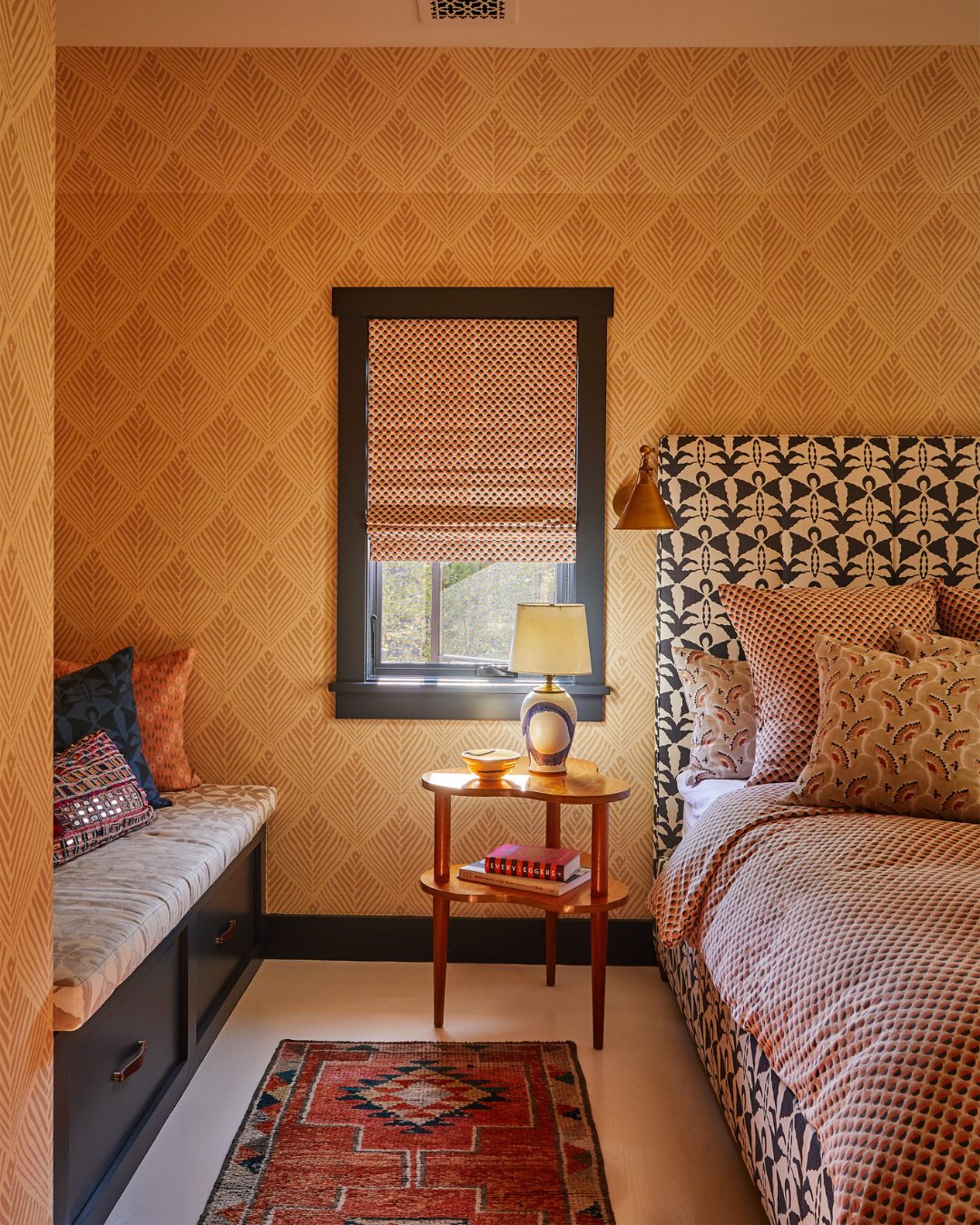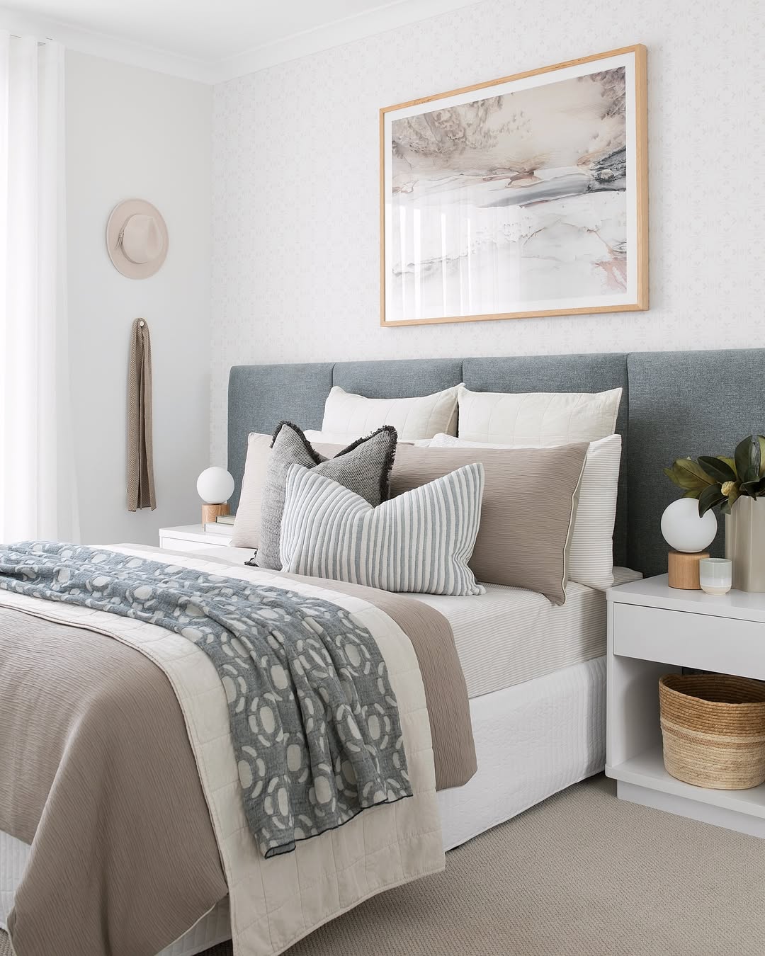 Add linen or cotton bedding in earthy shades to keep the space breathable and cozy.