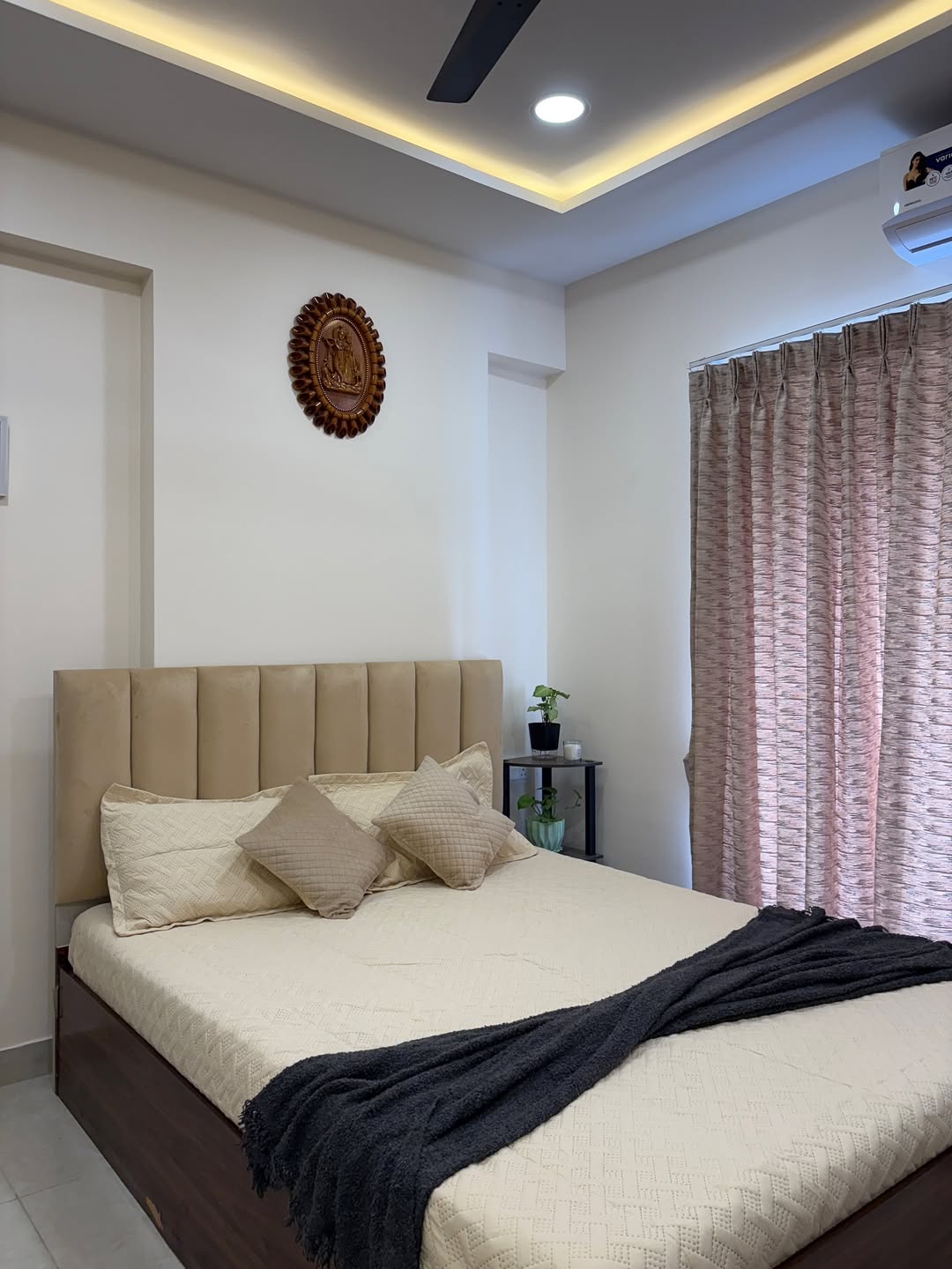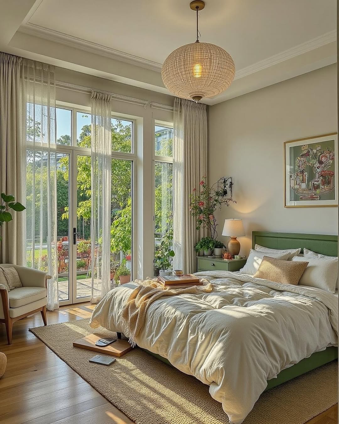 Place potted plants or hanging greenery to introduce life and freshness into the bedroom.