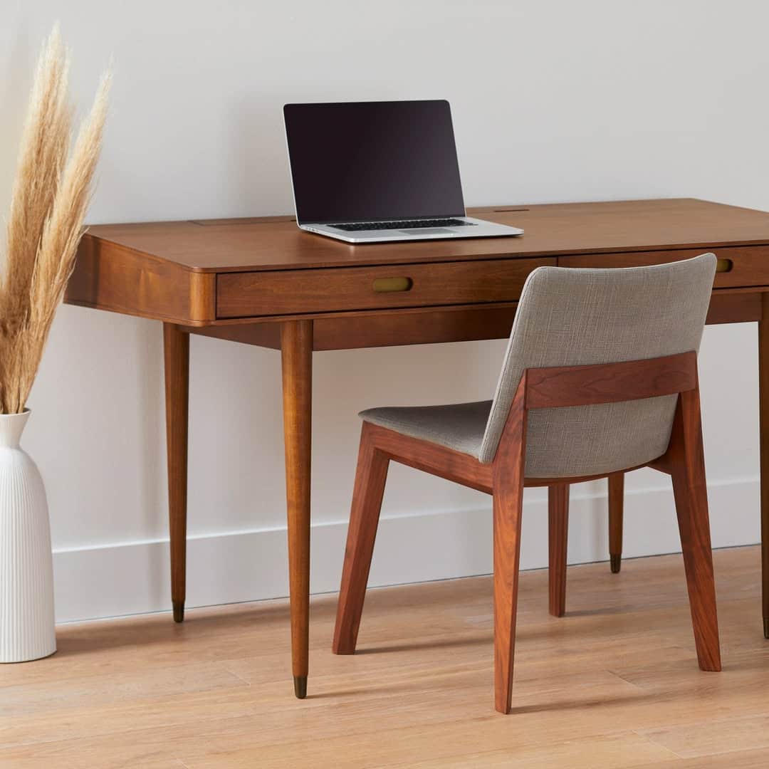 For a professional and commanding look, an executive desk is the ultimate choice. These large desks often come with expansive surfaces, rich finishes like mahogany, and plenty of drawers. They’re ideal for home offices where space is not a concern and a formal aesthetic is desired. Executive desks provide room for dual monitors, documents, and personal items without feeling cramped. Their solid build and elegant design elevate the atmosphere, making work feel more structured and important. Pair with a leather chair and stylish desk lamp to complete the classic office look.