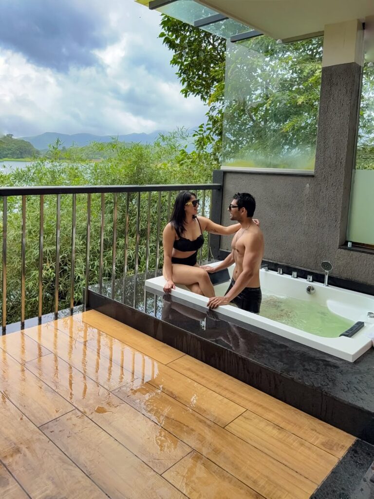Transform your terrace into a tropical getaway by surrounding the Jacuzzi with lush greenery like palms, bamboo, and large leafy plants. Use natural stone or wood flooring to enhance the exotic feel. Add tiki-style lanterns or warm string lights for evening ambiance. A small water feature nearby can amplify the soothing atmosphere. Bright outdoor cushions and rolled white towels complete the resort look. This idea works wonderfully for warm climates and makes every soak feel like a vacation, offering a refreshing escape from daily stress without leaving home.