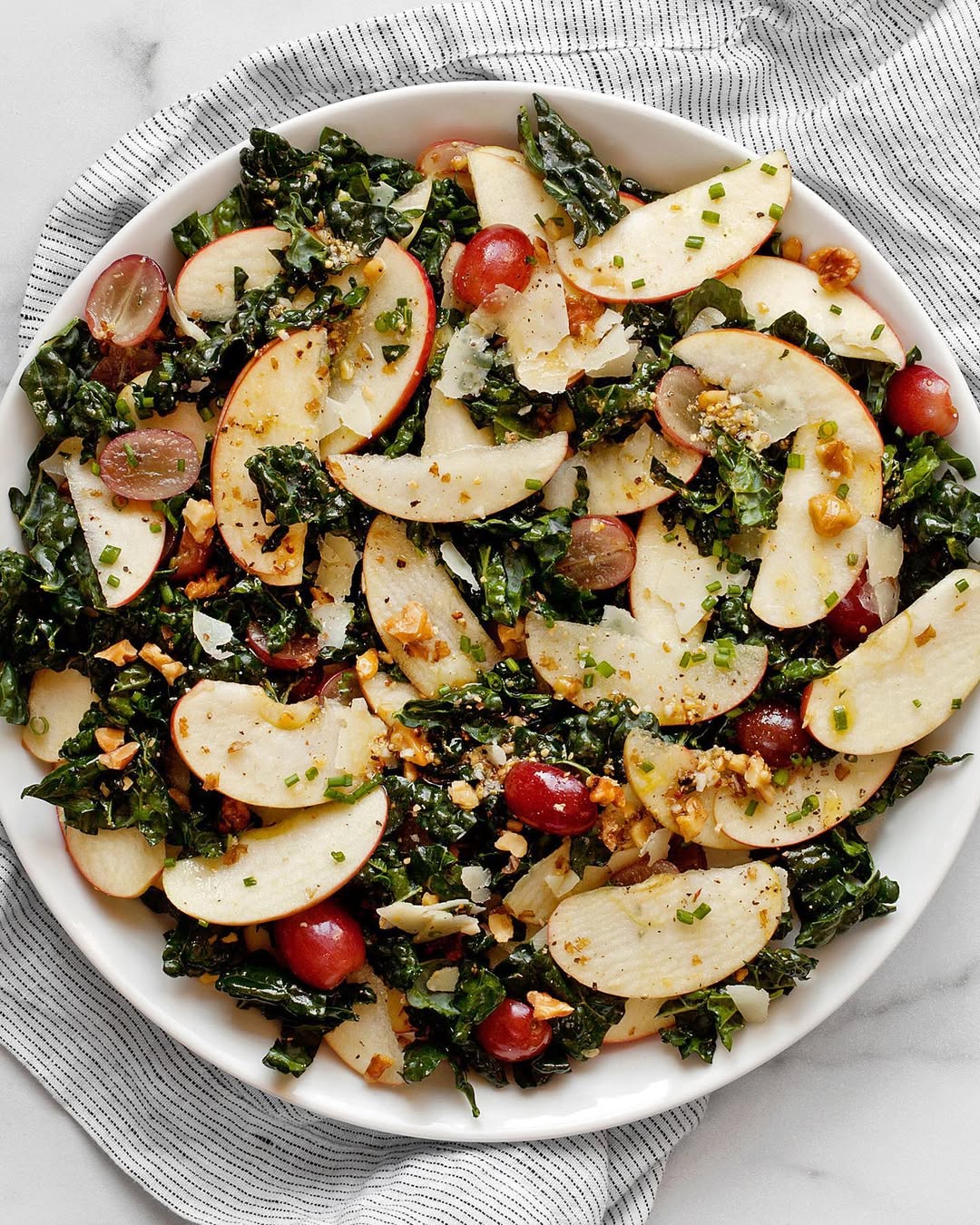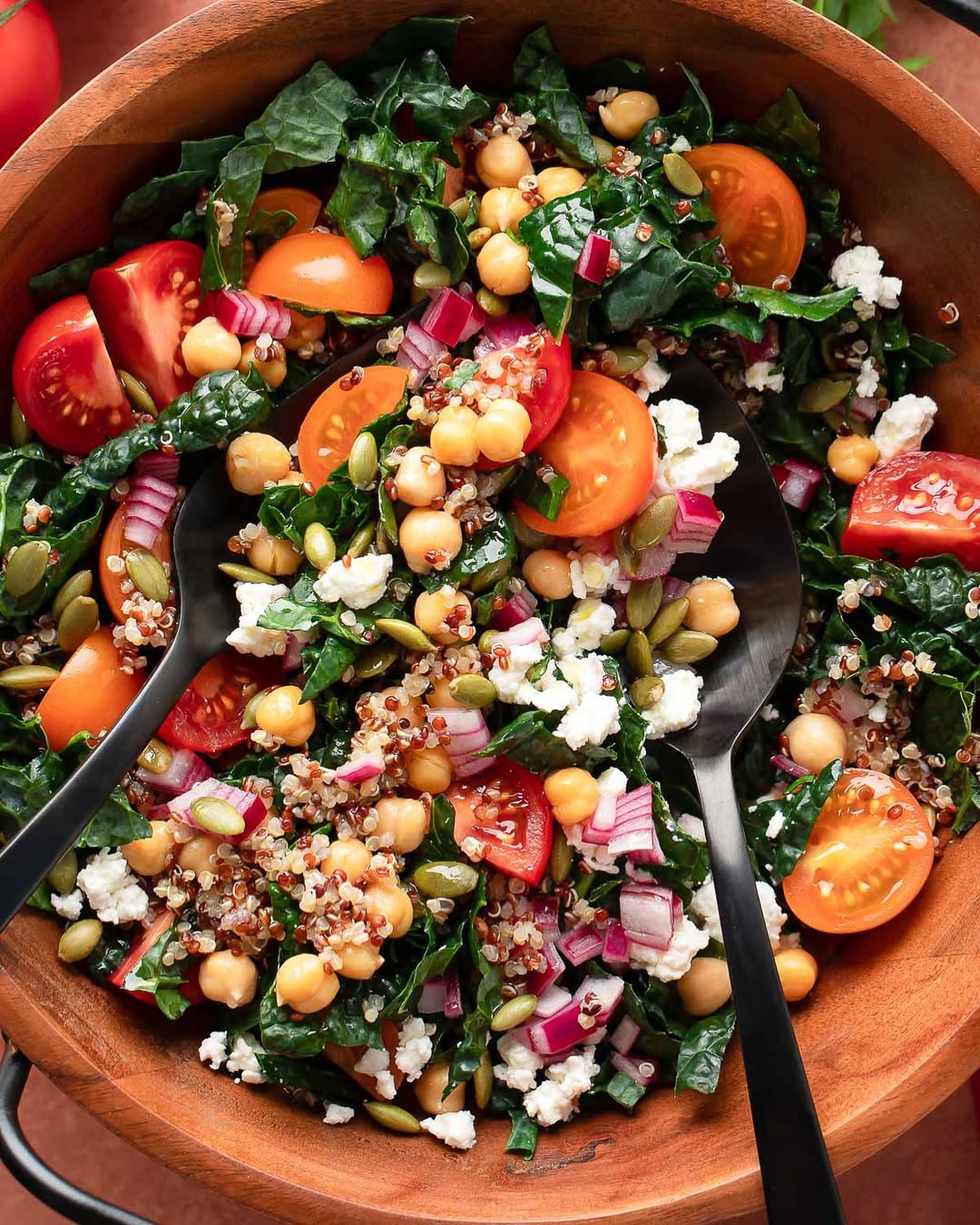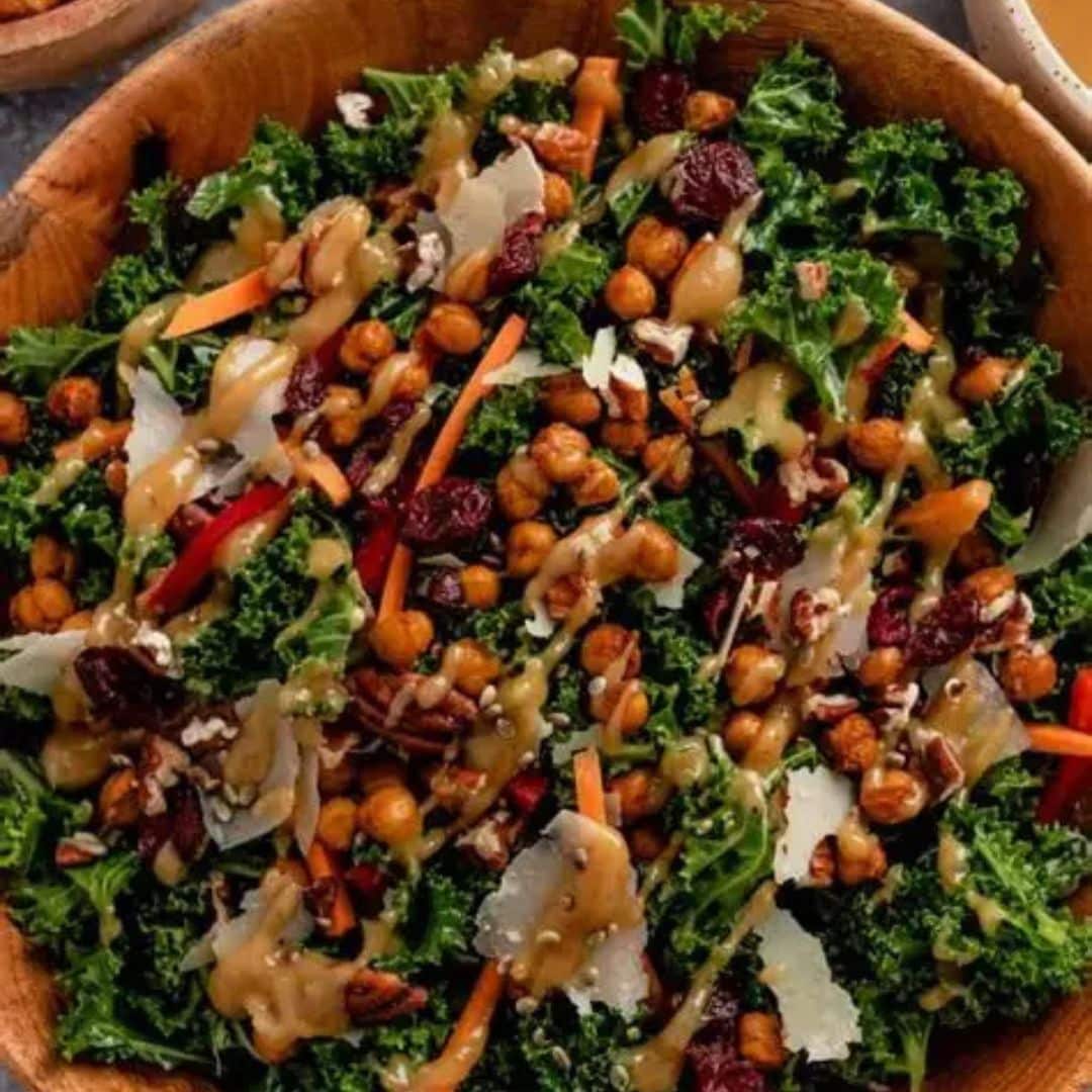 Kale Salad Recipe Ideas – Kale salads are a versatile and nutrient-packed option that can be both hearty and refreshing. A popular recipe involves massaging curly or Tuscan kale leaves with lemon juice and olive oil to soften them, creating a tender base. Adding roasted chickpeas provides satisfying crunch and plant-based protein, while grated carrots, beets, and thinly sliced watermelon radish add vibrant color and earthy sweetness. Creamy avocado cubes and dried cranberries bring a balance of richness and tartness, complemented by toasted pepitas and sesame seeds for nutty texture. Dressings often highlight fresh ingredients, such as carrot ginger, lemon balsamic, or tahini-based sauces, which brighten the robust kale flavor without overpowering it. Variations include Greek kale salads with chickpeas, olives, and tahini dressing, or combinations with roasted pumpkins, feta, and pesto for seasonal appeal.