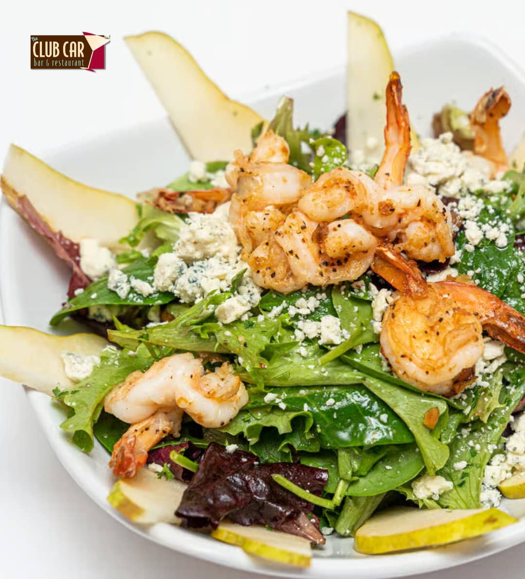 This sophisticated salad combines sweet pear, tangy blue cheese, and earthy kale, enhanced by a crunchy walnut vinaigrette.