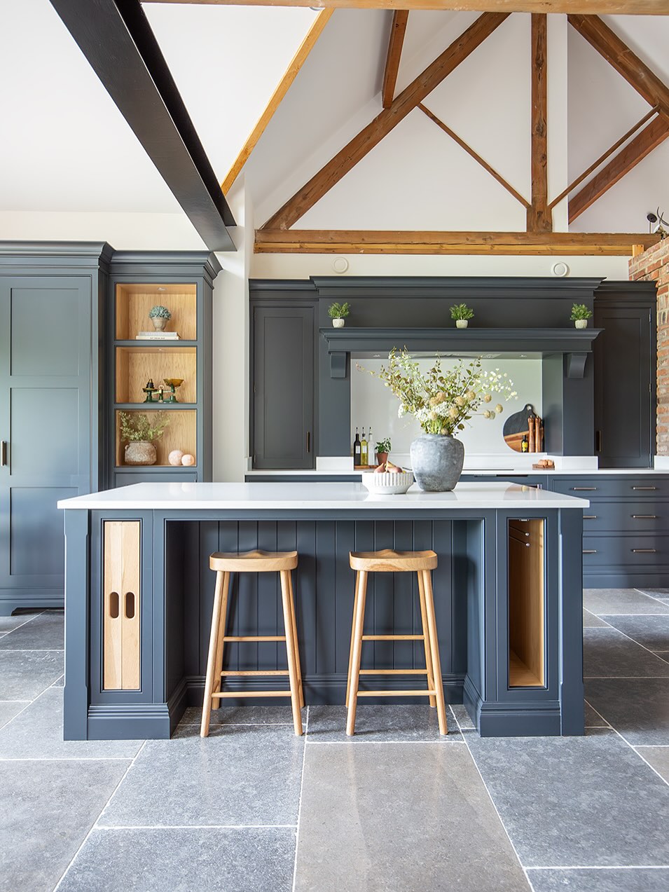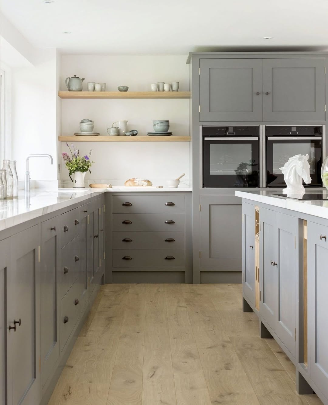 Natural stone flooring, such as marble, slate, or travertine, adds elegance and timeless beauty to a kitchen. Each stone tile has unique patterns and textures, giving the space a luxurious, one-of-a-kind appearance. Stone flooring is highly durable and can withstand heavy use when properly sealed. However, it does require regular maintenance to prevent staining and moisture damage. Natural stone stays cool, which is beneficial in warm climates. While more expensive, stone flooring enhances property value and creates a high-end, sophisticated kitchen atmosphere.