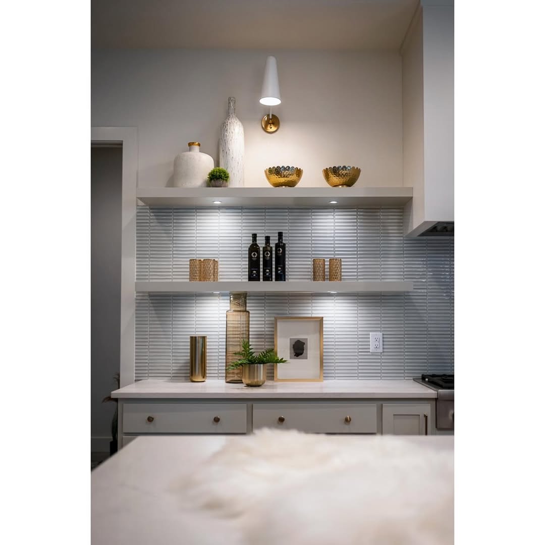 Under-cabinet LED strips are perfect for task lighting in food prep areas. They eliminate shadows caused by overhead lights, making chopping and measuring easier. LED strips are energy-efficient, long-lasting, and available in warm or cool tones. They can be installed as continuous strips or puck lights for a more focused effect. Motion-sensor versions are convenient for late-night use, and dimmable options give you control over brightness. These lights also add a subtle, modern glow that enhances your backsplash and countertops, making them a design feature even when the main lights are off.