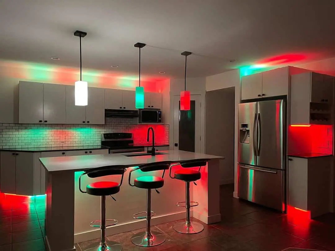 Smart LED lighting lets you customize color, brightness, and even scheduling from your phone or via voice control. You can set bright white for cooking, warm amber for dinner, or playful colors for entertaining. Smart bulbs and strips can fit into pendant lights, under-cabinet areas, or even toe-kick zones. They’re energy-efficient and long-lasting, and some models sync with music for parties. This flexibility means you can adapt the atmosphere instantly without swapping fixtures. It’s a great way to make your kitchen more interactive, modern, and adaptable to different moods and occasions.