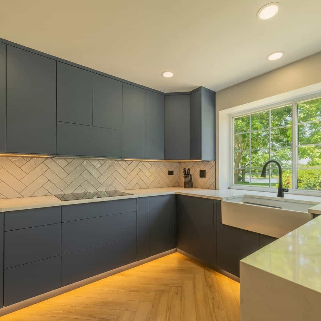 Toe-kick lighting adds a subtle, modern touch by installing LED strips at the base of lower cabinets. It creates a floating effect and serves as a nightlight or soft ambient glow. Perfect for late-night kitchen trips without turning on harsh overhead lights. This lighting can also highlight your flooring, making patterns or textures stand out. Choose warm tones for a cozy feel or cooler tones for a sleek, modern vibe. It’s low-energy and can be motion-activated for convenience. While mainly decorative, toe-kick lighting also improves safety by subtly illuminating the kitchen floor.