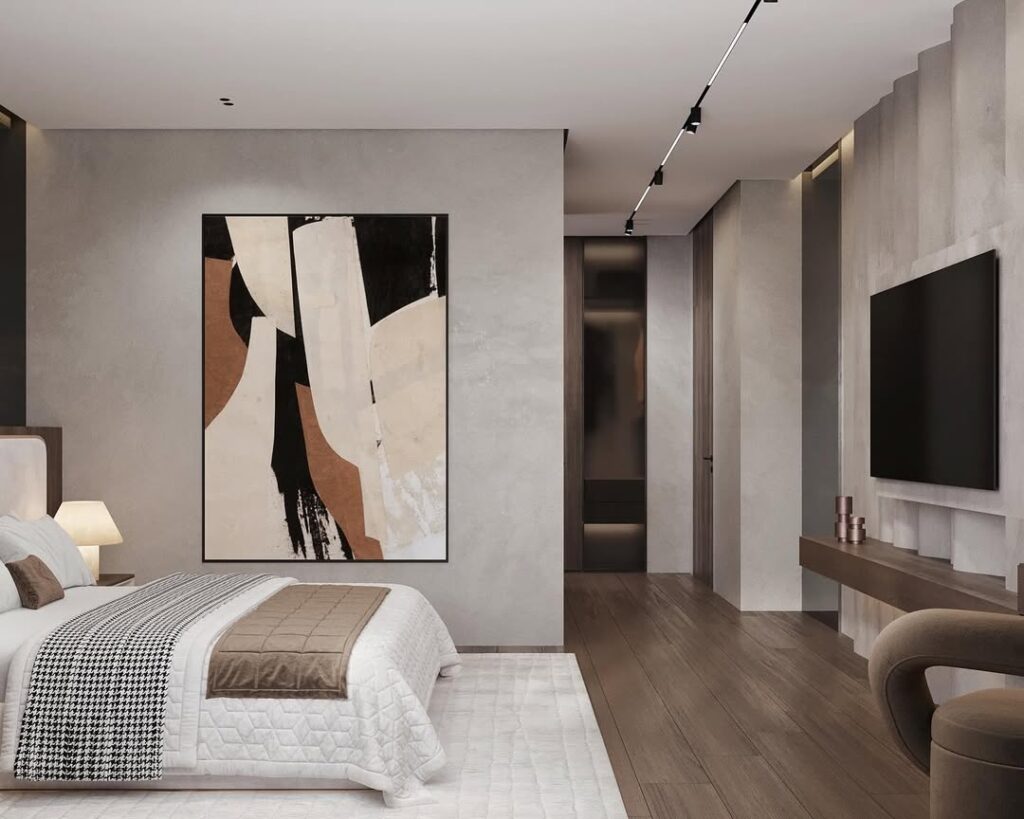 Large bedrooms also allow for generous storage solutions, such as walk-in closets, wardrobes, or built-in cabinetry. Soft furnishings like area rugs, curtains, and throw pillows help balance the scale of the room and add comfort. Incorporating artwork, mirrors, and plants further enhances the space, making a large bedroom feel elegant, relaxing, and thoughtfully designed.
