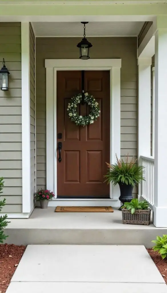 Decorative lanterns, string lights, or sconces add charm and soft lighting, especially in the evening. For seasonal flair, rotate accents like wreaths, throw pillows, and doormats to reflect the time of year. Personalized touches like wooden welcome signs, vintage crates, or a porch-friendly console table enhance character and make the long porch feel inviting and thoughtfully styled.