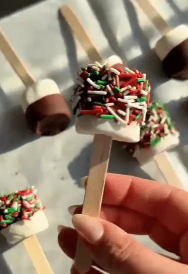 Prepare marshmallows: Cut marshmallows into cubes or use store-bought. Insert a lollipop stick or skewer into each marshmallow for easy dipping.