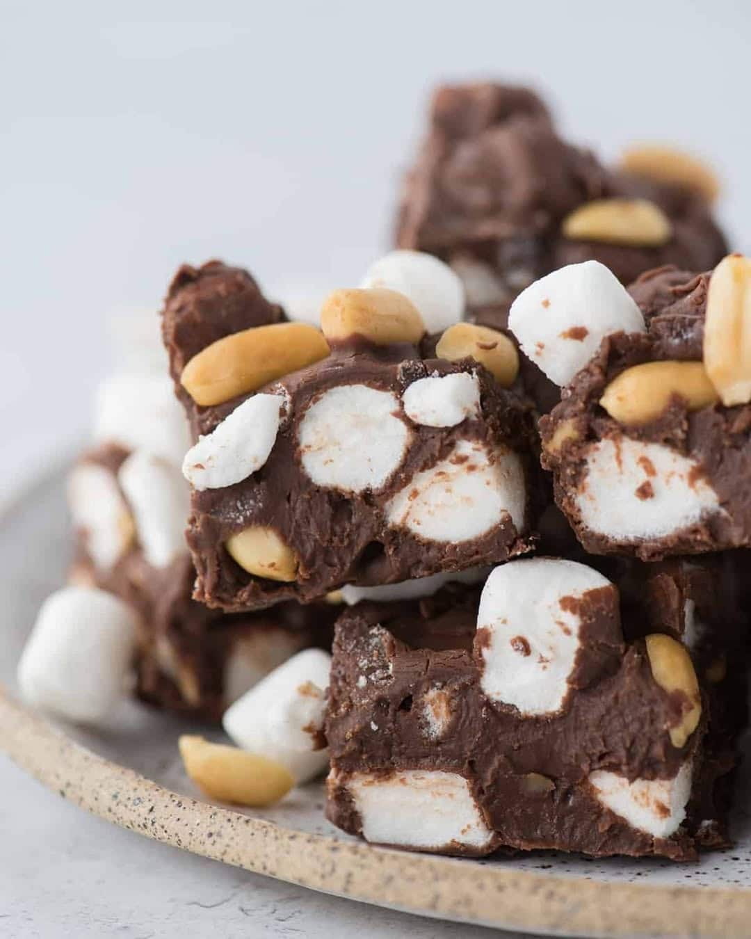 Rich, chocolatey fudge studded with marshmallows, nuts, and cookies. A no-bake treat that’s easy yet indulgent.
