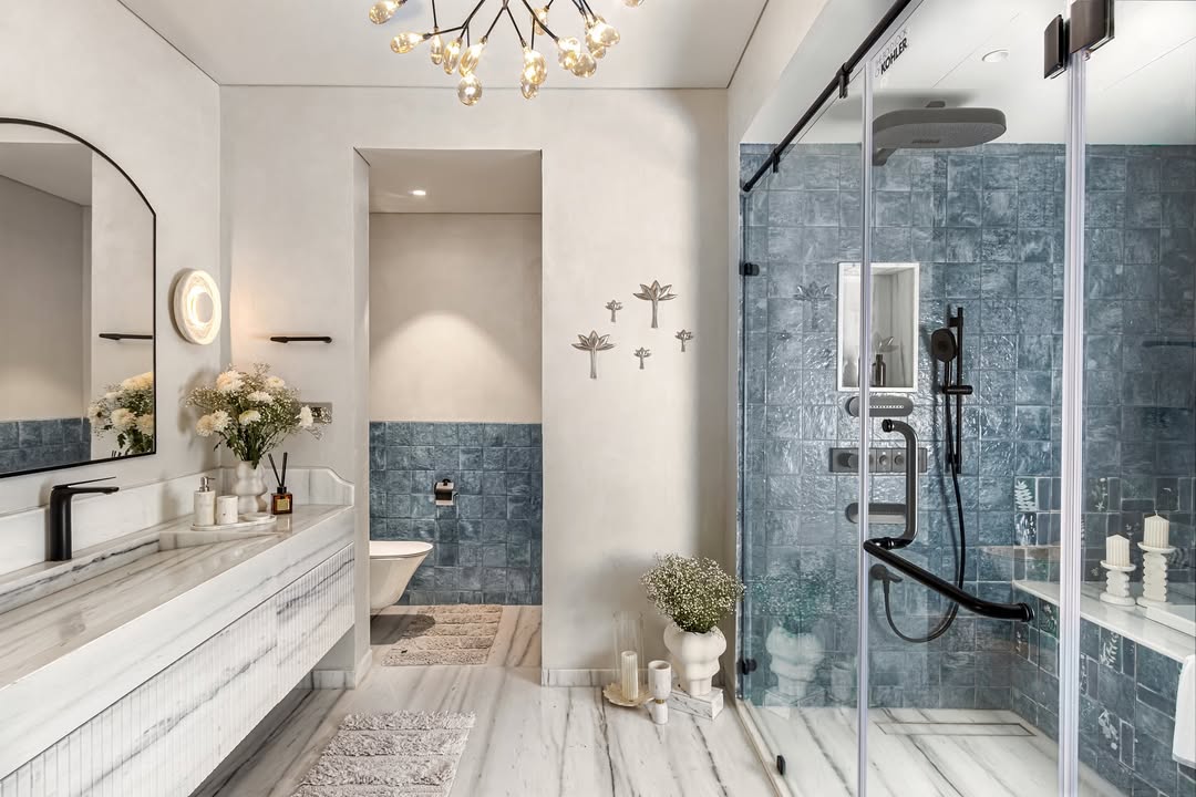 Select high-quality finishes such as marble countertops, glossy tiles, or polished chrome fixtures.