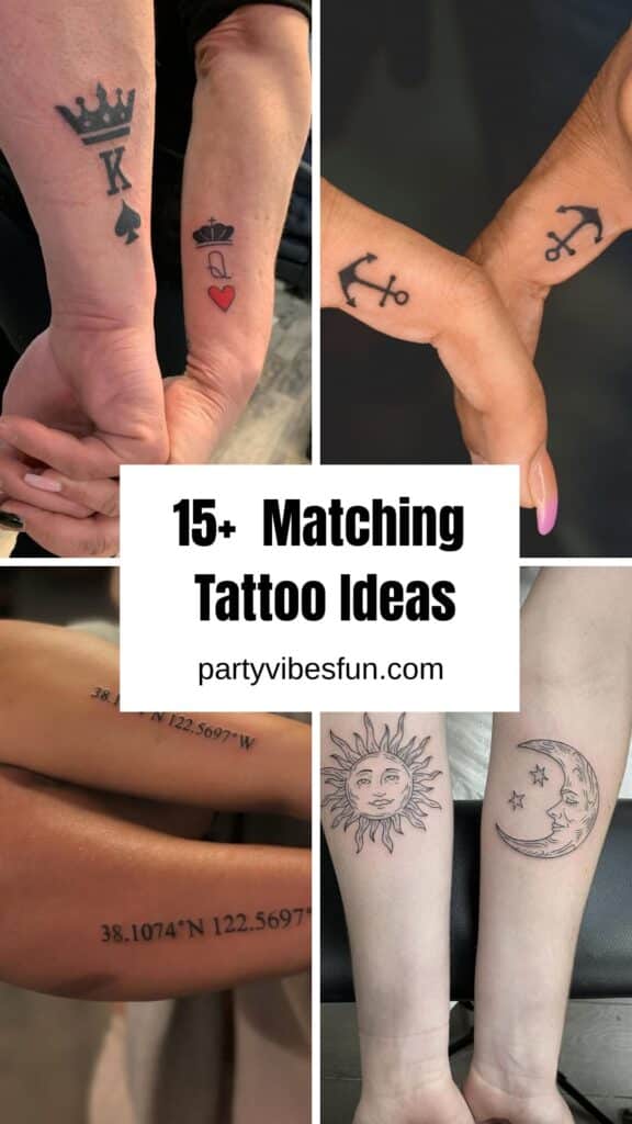 Matching Tattoo Ideas – Matching tattoos are a meaningful way to symbolize deep connections—whether between partners, siblings, best friends, or family members—and they can range from subtle and minimalist to bold and symbolic. A popular choice is a pair of simple line-art designs that complete each other, such as half hearts, suns and moons, or puzzle pieces that fit together. For a more elegant touch, matching coordinates of a special place, significant dates in Roman numerals, or identical minimalist symbols like anchors, arrows, or infinity lines work beautifully. Some people choose complementary designs rather than exact matches—like a lock and key, king and queen crowns, yin and yang halves, or complementary botanical elements such as paired vines or flowers.