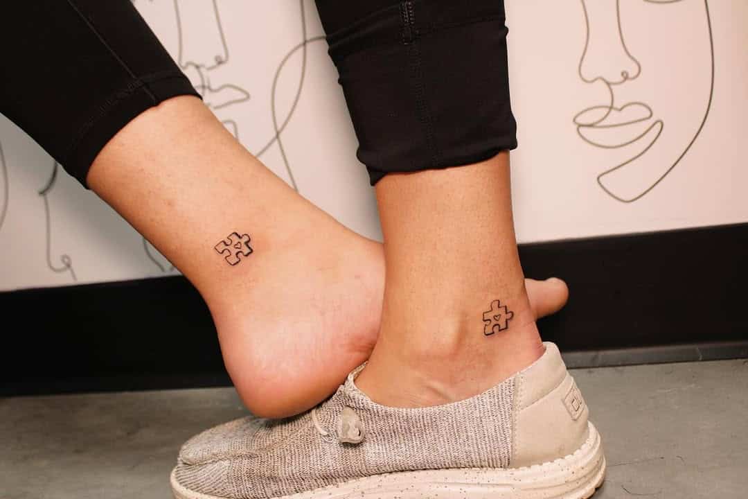 Puzzle piece tattoos are a fun and meaningful way to represent how two people fit perfectly together. Each person gets a puzzle piece with edges that match the other’s, symbolizing connection, compatibility, and the irreplaceability of the relationship. Designs can be colorful, geometric, or simple outlines. Many people personalize them with initials, tiny symbols, or miniature illustrations inside the puzzle piece. These tattoos suit placements like the wrist, ankle, forearm, or collarbone. The concept feels playful yet deeply emotional—showing that despite differences, both people form a complete picture together. It’s especially popular for couples, siblings, and lifelong friends.