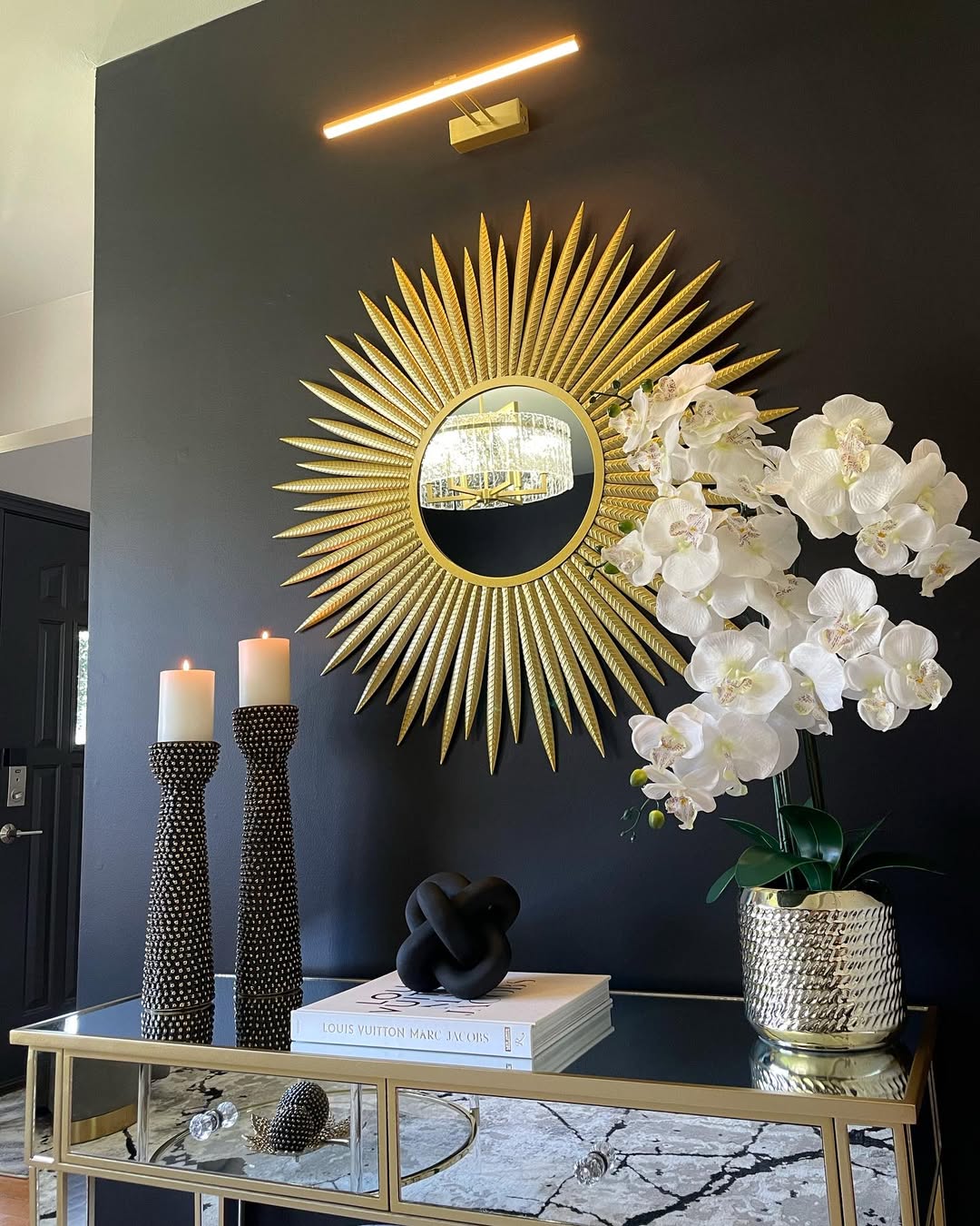 Layering mirrors on a console table adds depth, texture, and a curated feel to your living room. Start with a large mirror against the wall and place smaller framed mirrors in front of it. This creates dimension and visual richness without overwhelming the space. Choose complementary shapes and finishes to ensure harmony. Add decorative elements like books, candles, and small plants to complete the vignette. This approach is perfect for entryway-adjacent living rooms or areas where you want to create a stylish yet functional display.