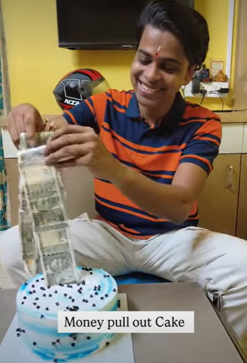 A fun American party cake where rolled bills are hidden inside and pulled out like a ribbon. Kids and adults love the surprise element at birthdays.