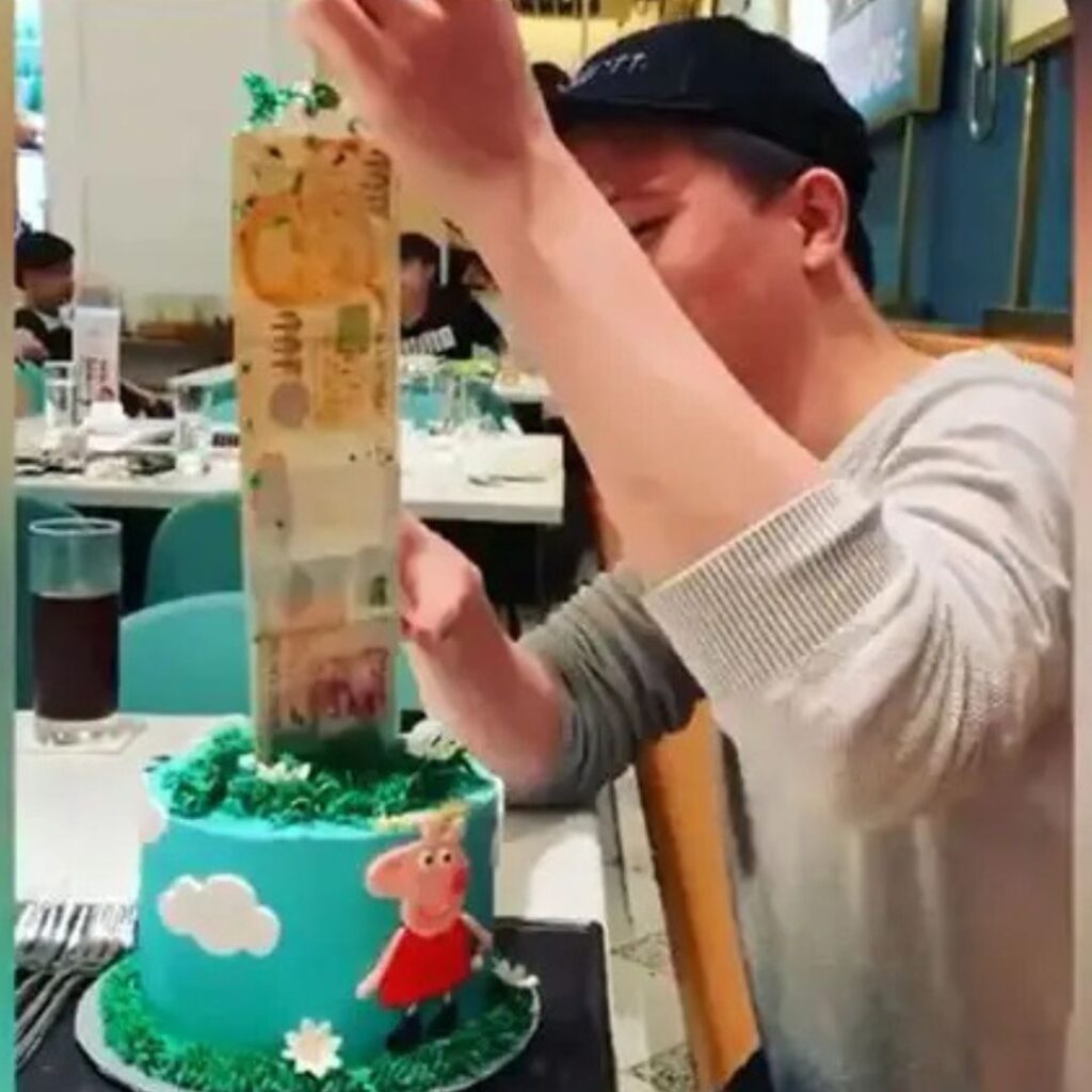 8. Decorate with sprinkles and candles, and when serving, pull money out slowly.