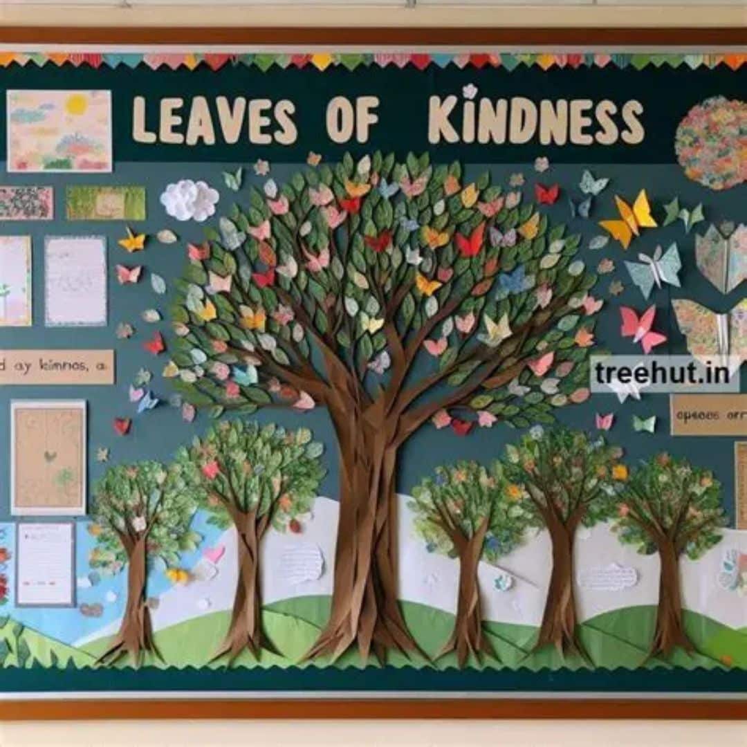 Create a large paper tree with bare winter branches. Each student or participant writes their New Year’s resolution on a leaf-shaped paper and attaches it to the tree. Over time, the branches will “grow” with colorful leaves, symbolizing renewal and personal development. Add a snowy background with messages like “Let’s grow together this year.” This board beautifully combines art and introspection, making it ideal for schools, libraries, or workplaces focused on teamwork and self-improvement.
