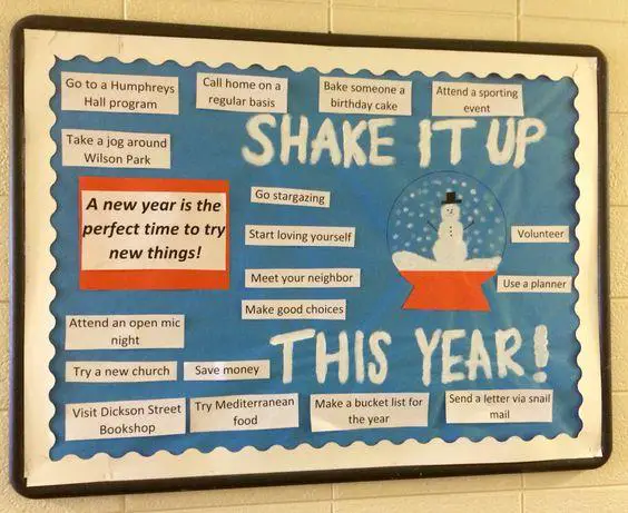 New Years Bulletin Board Ideas – A New Year’s bulletin board is a fun and creative way to celebrate the start of a new year while inspiring motivation, reflection, and positivity. These boards can be designed for classrooms, offices, or community spaces to capture the excitement of new beginnings. One popular idea is a “New Year, New Goals” theme, where participants write down their resolutions or aspirations on colorful paper cutouts shaped like stars, clocks, or fireworks and pin them to the board. Teachers can create a “Countdown to a Great Year” board, featuring calendars, inspiring quotes, and interactive sections for students to set learning goals. Another engaging concept is “Cheers to a Bright Future”, using shiny metallic papers, glitter borders, and festive confetti visuals to bring the spirit of celebration.