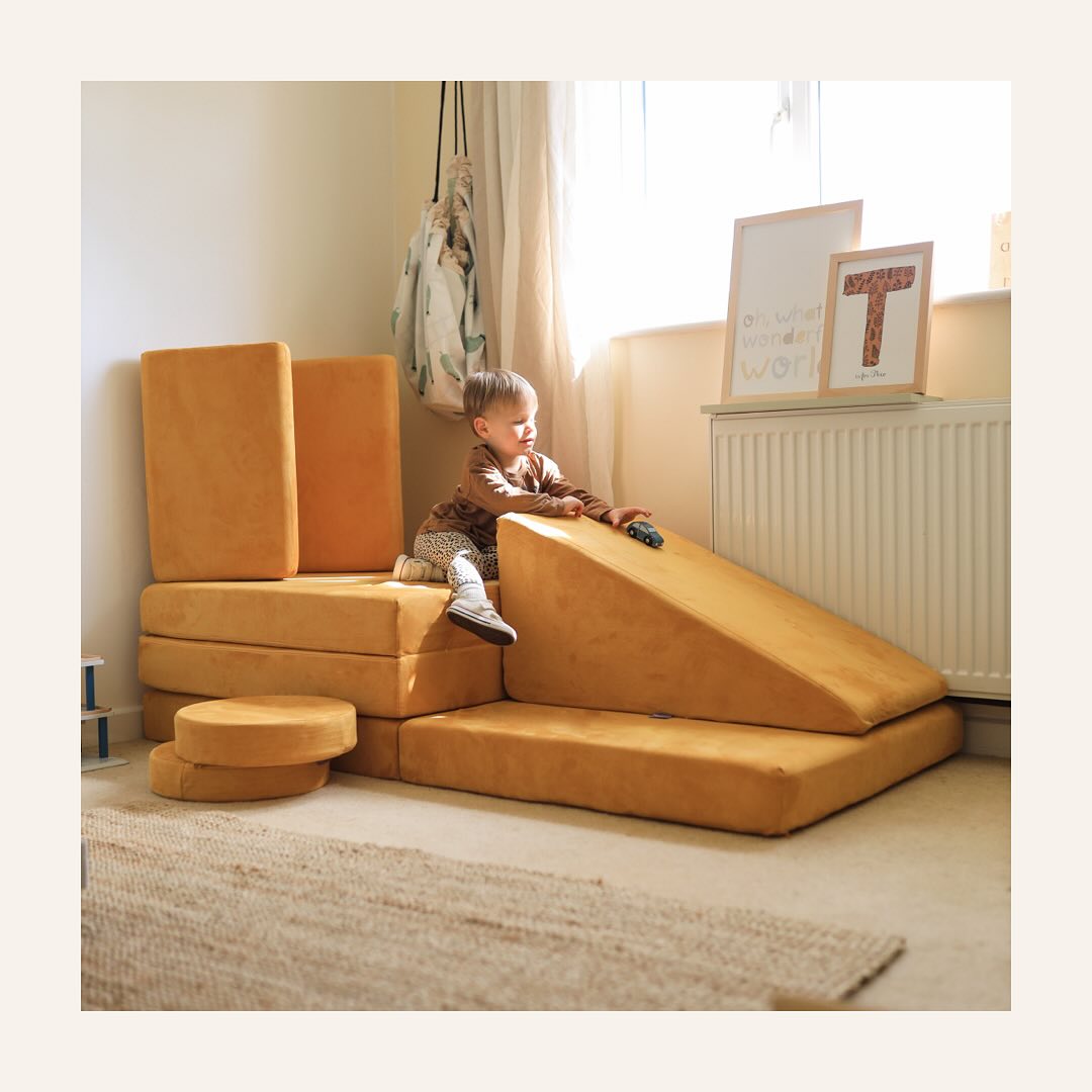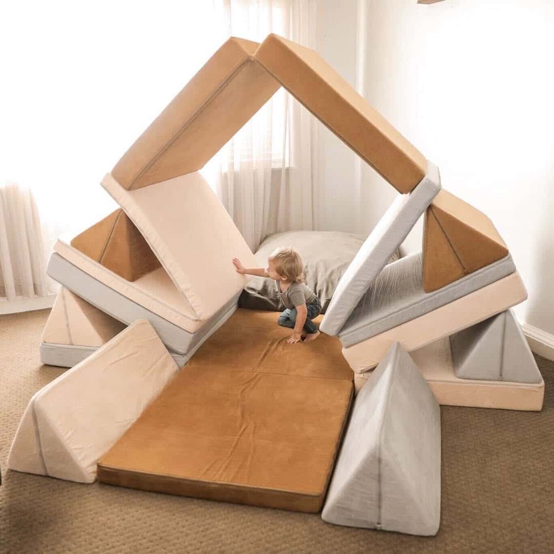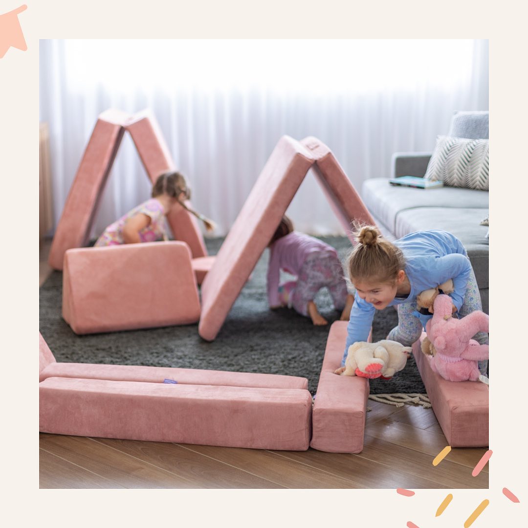 Turn your Nugget into an indoor obstacle course by arranging the cushions into tunnels, ramps, and hurdles. This setup encourages gross motor skill development and keeps kids active indoors. Add soft balls, cones, or a “finish line” for extra fun. It’s perfect for energetic play during rainy days or birthday parties.