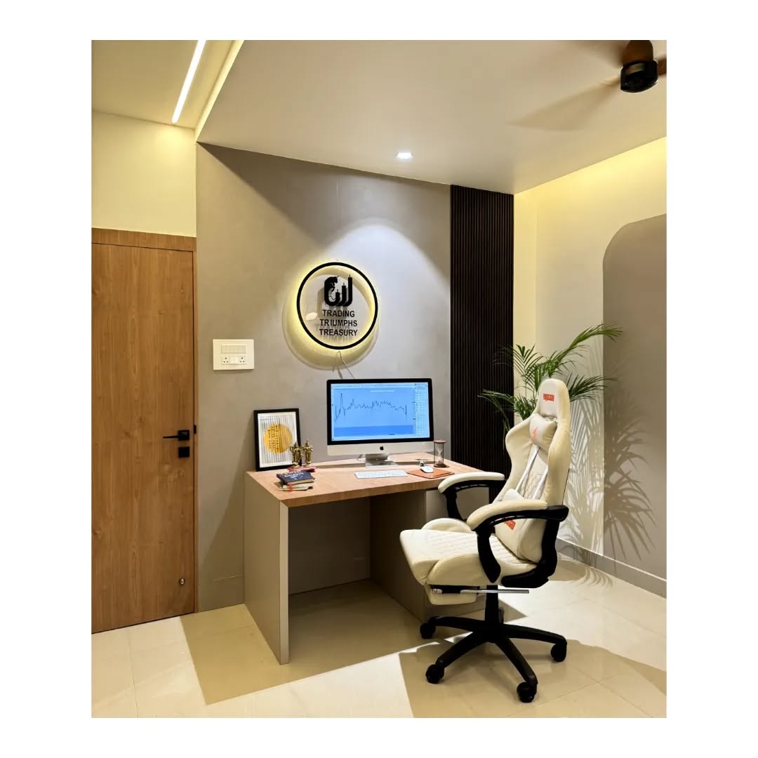 Use dynamic lighting to match trading moods and reduce eye strain. A blend of natural light, warm desk lamps, and adjustable LED strips creates a balanced environment. During early-morning sessions, cool-tone lighting can boost alertness, while warm lighting can calm nerves during volatile markets. Smart bulbs allow quick adjustments based on activity—analysis, trading, or post-market review. Lighting placed behind screens and under shelves creates a modern, professional aesthetic that keeps the workspace crisp. Proper lighting also enhances video-call quality for those who collaborate or stream trading content.