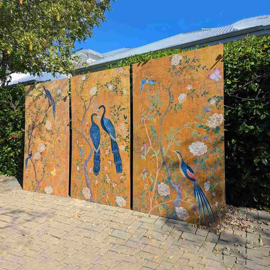 Add a splash of personality with painted fence murals or mounted art panels. You can create your own mural using weatherproof paints or buy pre-made metal or wood panels with intricate designs. Abstract patterns, nature scenes, or geometric art can reflect your style and add color. This idea works especially well in urban gardens where fences are prominent. For a cohesive look, coordinate colors with existing garden elements. Murals can be updated seasonally or designed with a timeless theme to keep the area vibrant all year.