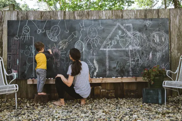 Mount a weather-resistant chalkboard or writeable surface on your fence. This is a fun and interactive décor idea, especially for families with kids. Use it to write inspirational quotes, garden notes, seasonal greetings, or doodles. It can also serve a functional role for garden schedules or party menus. Frame it with wood or decorate around it with plants or string lights. Reapply chalkboard paint annually to keep it fresh and weatherproof. It’s a unique addition that adds charm and interactivity to your garden space.