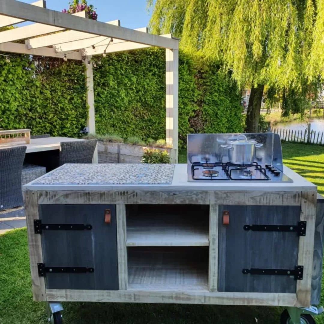 For eco-conscious homeowners, design a patio kitchen using sustainable materials like bamboo, recycled stone, and reclaimed wood. Include a solar-powered lighting system and an energy-efficient grill. A rainwater collection system can serve a small sink or herb garden. Integrate planters filled with edible greens and flowers around the kitchen island. Natural shades and minimal waste principles guide the design. This outdoor kitchen promotes sustainable living without compromising comfort or beauty—a smart, green solution for modern backyards.