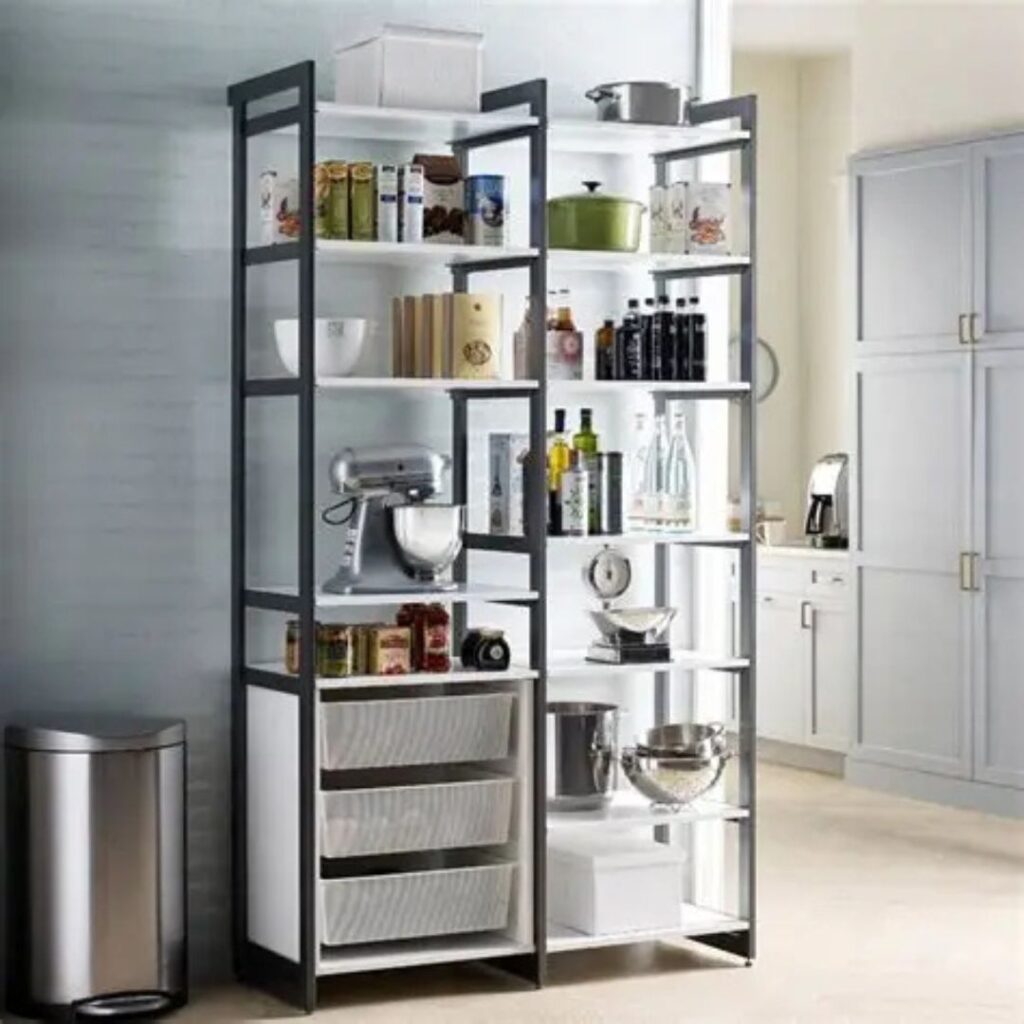 These shelves are designed to store kitchen appliances like mixers, blenders, or air fryers. They are deeper and sturdier to hold weight. Some include built-in outlets so appliances can be used without moving them. This keeps countertops clear. Adjustable heights accommodate tall machines. Appliance shelves make your pantry multifunctional. They are ideal for serious home cooks. This design blends storage with convenience, turning the pantry into a prep zone.