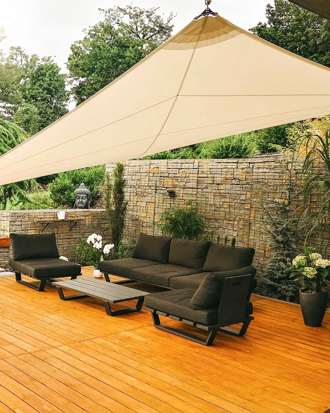 Shade sails are modern, artistic patio covers that use tensioned fabric stretched between anchor points. Their sculptural shapes—often triangular or rectangular—create bold visual statements while offering effective shade. Made from durable UV-blocking material, they come in a wide range of colors and sizes to complement any design. Shade sails allow airflow, making the patio cooler without trapping heat. They’re also cost-effective and easy to install, adjust, or replace. This cover is ideal for those wanting a stylish, contemporary look with customizable shade patterns that shift beautifully throughout the day.