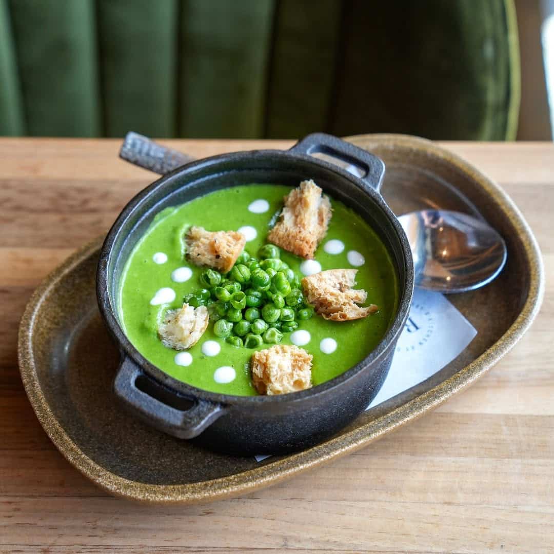 A velvety smooth pea soup that combines sweetness from peas with savory onion and garlic.