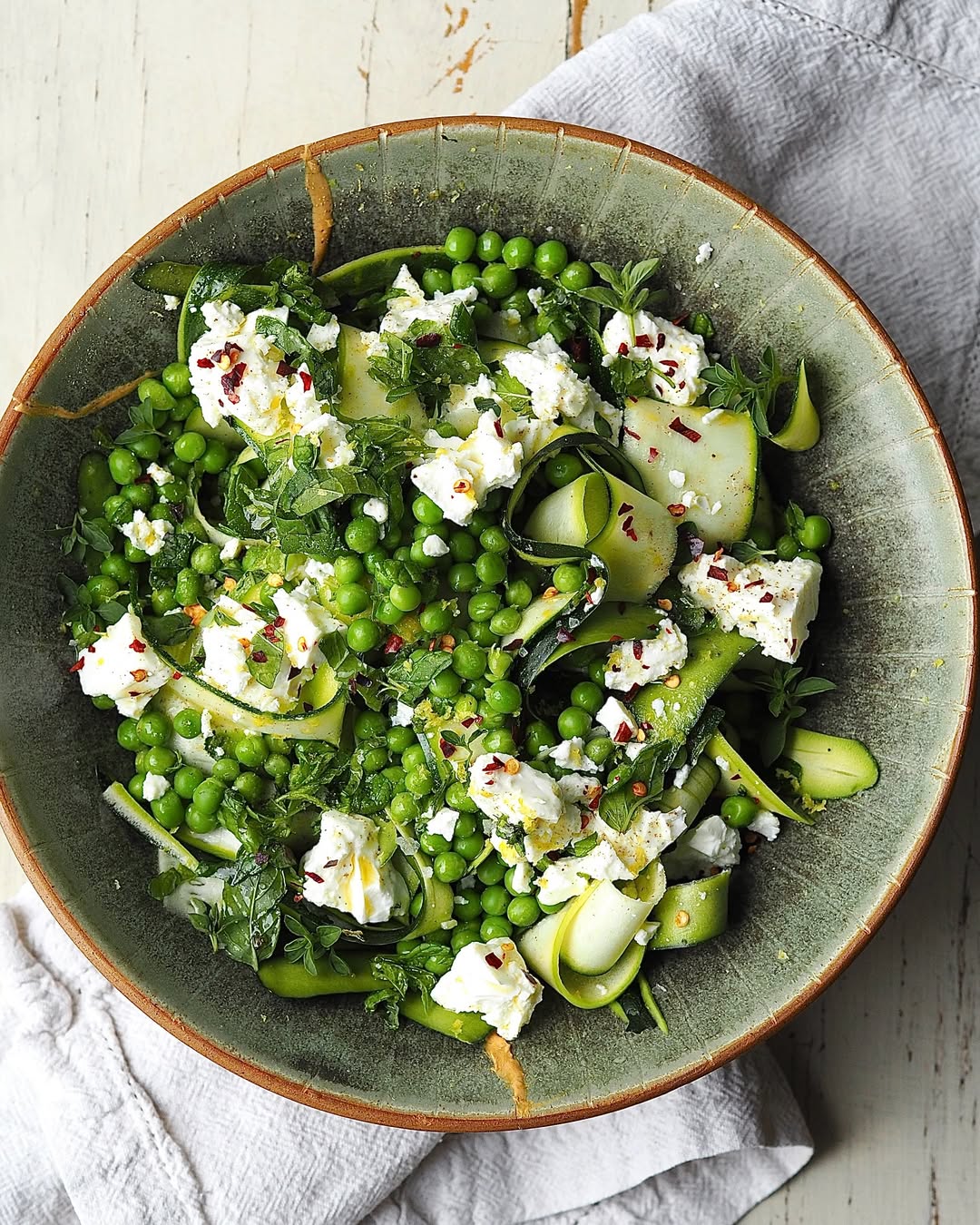 The feta adds a creamy, salty contrast to the peas.