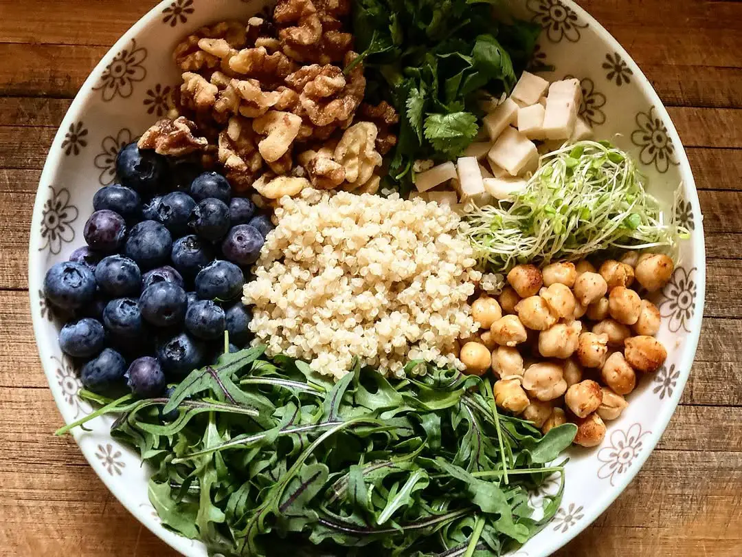 • Description: A balanced bowl of grains, greens, protein, and dressing.