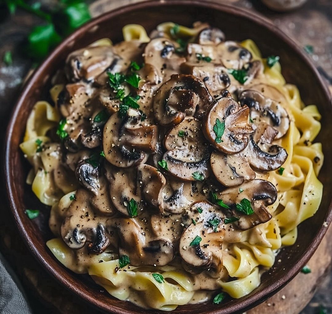 • Description: A creamy mushroom pasta dish made with cashew cream.