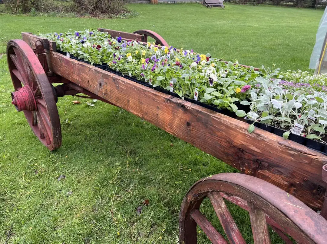 Turn an old wagon wheel into a unique circular planter box by placing it on a shallow base and filling the sections between spokes with soil. Each segment becomes its own mini planting zone—great for creating a mixed arrangement of flowers or herbs. It’s an eye-catching centerpiece for a country-style or vintage-themed garden. Add a few garden gnomes or fairy lights for a whimsical touch. It’s both decorative and functional, combining rustic charm with creative gardening.