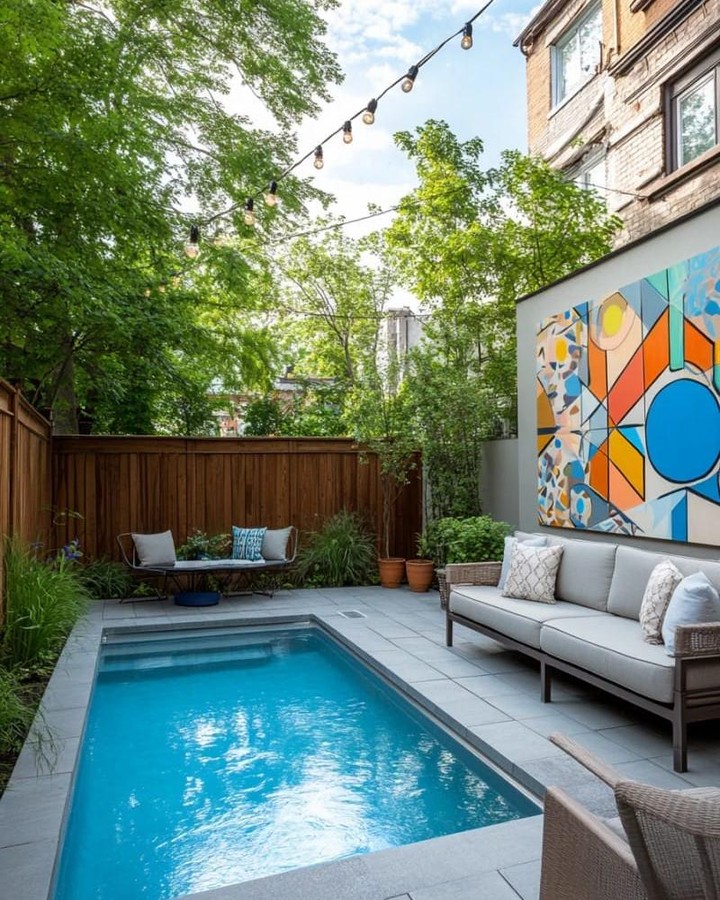Hang colorful fabric flags or bunting across the pool area.