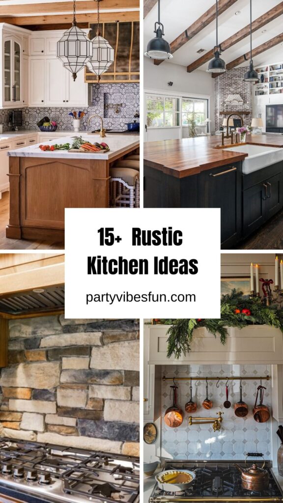 Rustic Kitchen Ideas – A rustic kitchen celebrates warmth, simplicity, and a connection to nature, blending old-world charm with cozy functionality. This style is defined by natural materials such as reclaimed wood, rough stone, aged metals, and warm earthy tones that make the space feel lived-in and inviting. Think open wooden shelving displaying ceramic dishes, farmhouse sinks, exposed ceiling beams, and vintage-style lighting that gives off a soft amber glow. Textures play a major role: distressed cabinets, butcher-block countertops, woven baskets, and linen fabrics add depth and character.