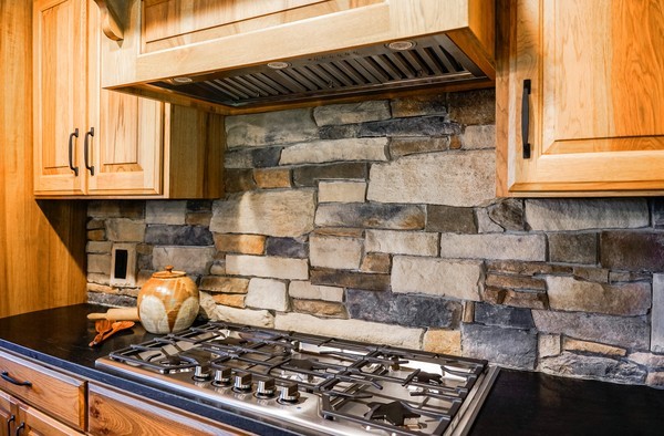 Stone elements—whether rough-cut, stacked, or polished—bring an earthy authenticity to a rustic kitchen. A stone backsplash behind the stove or along an accent wall introduces texture that complements wood cabinets and metal fixtures. Natural stone shades such as slate, limestone, and travertine add organic variation that feels both rugged and refined. Incorporating stone around a hearth-style cooking area enhances the cozy, old-world charm. When paired with warm lighting, stone surfaces glow beautifully, making the kitchen feel like a retreat. This idea works well in mountain homes, cottages, or any space seeking a grounded, nature-inspired aesthetic.