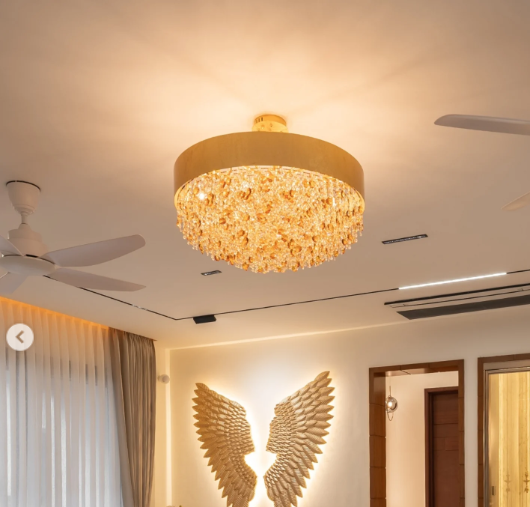 Install a small crystal or distressed metal chandelier for a touch of glamour. Shabby chic often blends rustic and elegant elements. A chandelier provides sparkle while maintaining softness if you choose muted finishes. It becomes a focal point without overpowering the room. Pair it with simple furniture to keep balance. Even in small spaces, a petite chandelier adds charm. The contrast between worn textures and refined lighting captures shabby chic perfectly—comfortable yet graceful, vintage yet stylish.