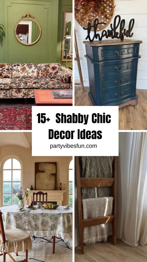 Shabby Chic Decor Ideas – Shabby chic décor is a charming interior style that blends vintage elegance with soft, lived-in comfort. It celebrates imperfection, using distressed furniture, weathered finishes, and repurposed pieces to create a cozy, romantic atmosphere. A typical shabby chic space features a light, airy color palette—think whites, creams, blush pinks, sage greens, and soft pastels—that helps reflect natural light and make rooms feel calm and inviting. Furniture often has an antique or flea-market feel, with carved wood details, curved lines, and chipped paint that add character rather than looking worn out. Textiles play a big role: floral prints, lace curtains, ruffled cushions, and plush throws layer softness and nostalgia into the room. Decorative accents like vintage picture frames, porcelain vases, old books, and mismatched china enhance the collected-over-time look.