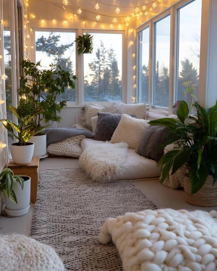 Transform a small front porch into a welcoming retreat by adding compact seating such as a narrow bench, bistro chairs, or a loveseat. Soft cushions, weather-resistant pillows, and a throw blanket instantly create warmth and comfort. Choose neutral or earthy tones to keep the space visually open. A small side table can hold morning coffee or decorative accents. Even limited space can feel inviting when seating is thoughtfully scaled. This idea encourages relaxation while maintaining functionality, making the porch an extension of your living space rather than just a passageway.
